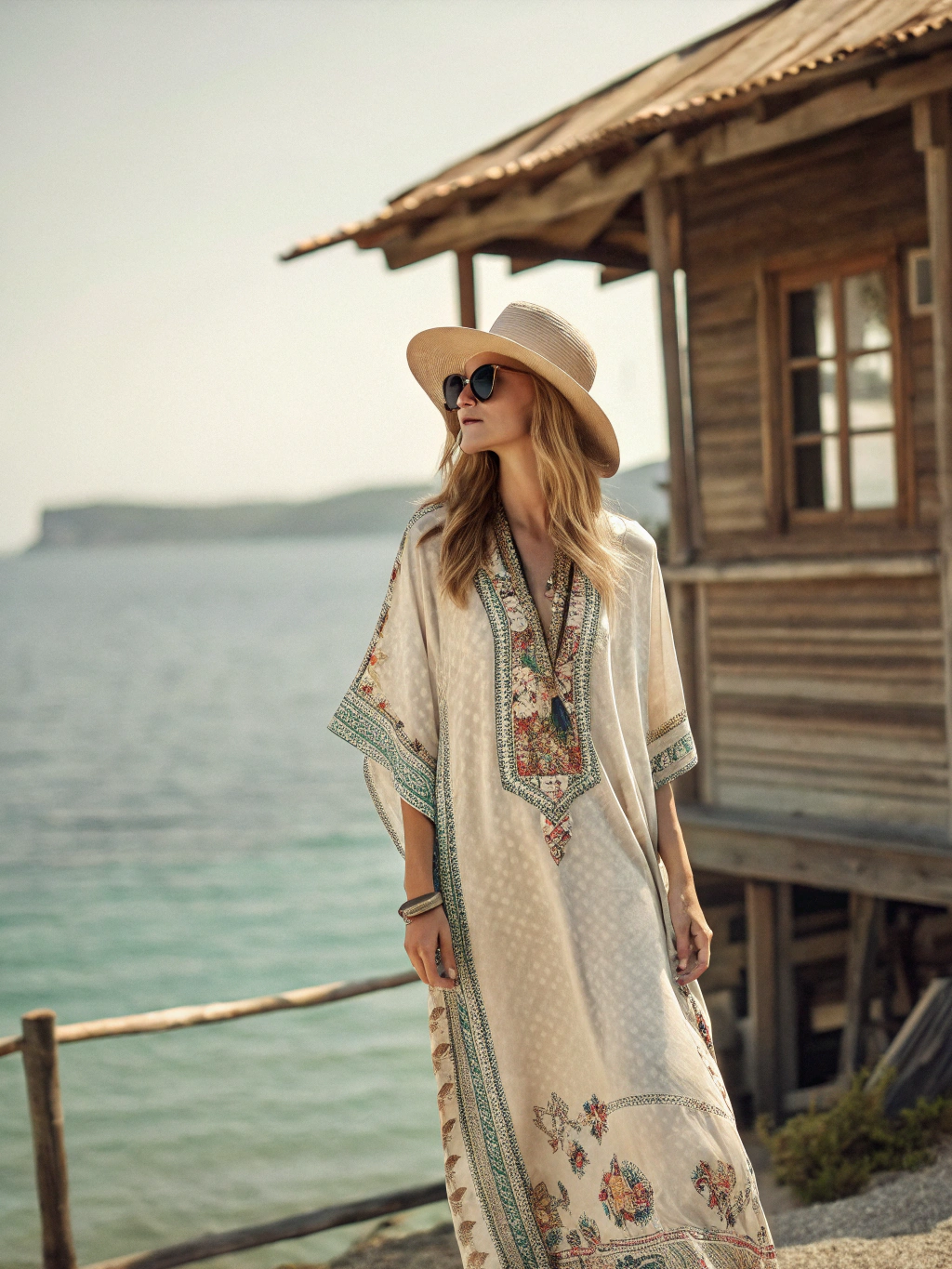 Silk Vintage Print Kaftan Maxi Dress$40.84 USD -