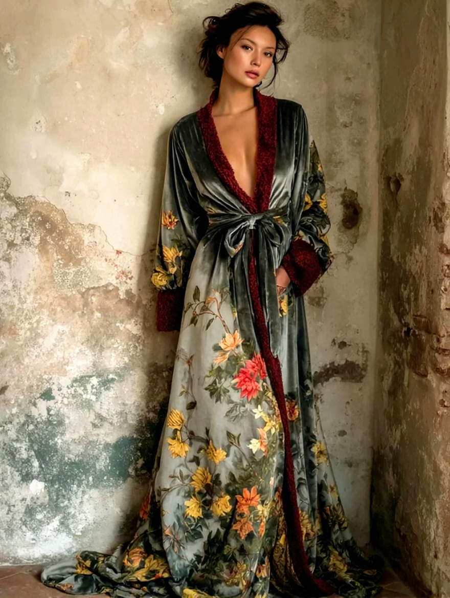 Women's Vintage Elegant Palace Floral Print Robe (belt Included)$56.99 USD -