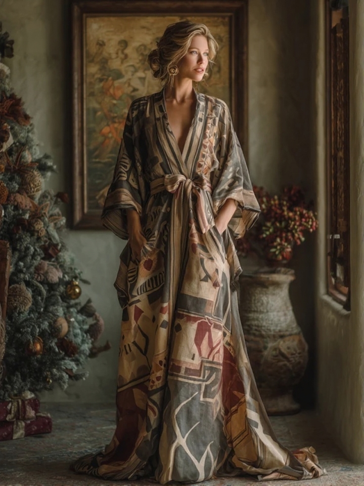 Elegant and comfortable cotton Christmas-themed robe (with belt)$57.94 USD -