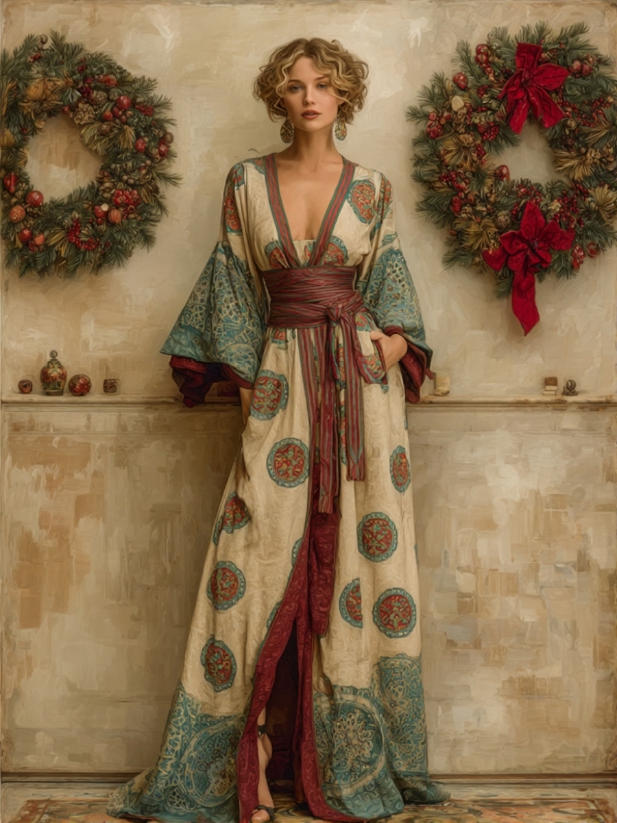Elegant and comfortable cotton Christmas-themed robe (with belt)$57.94 USD -