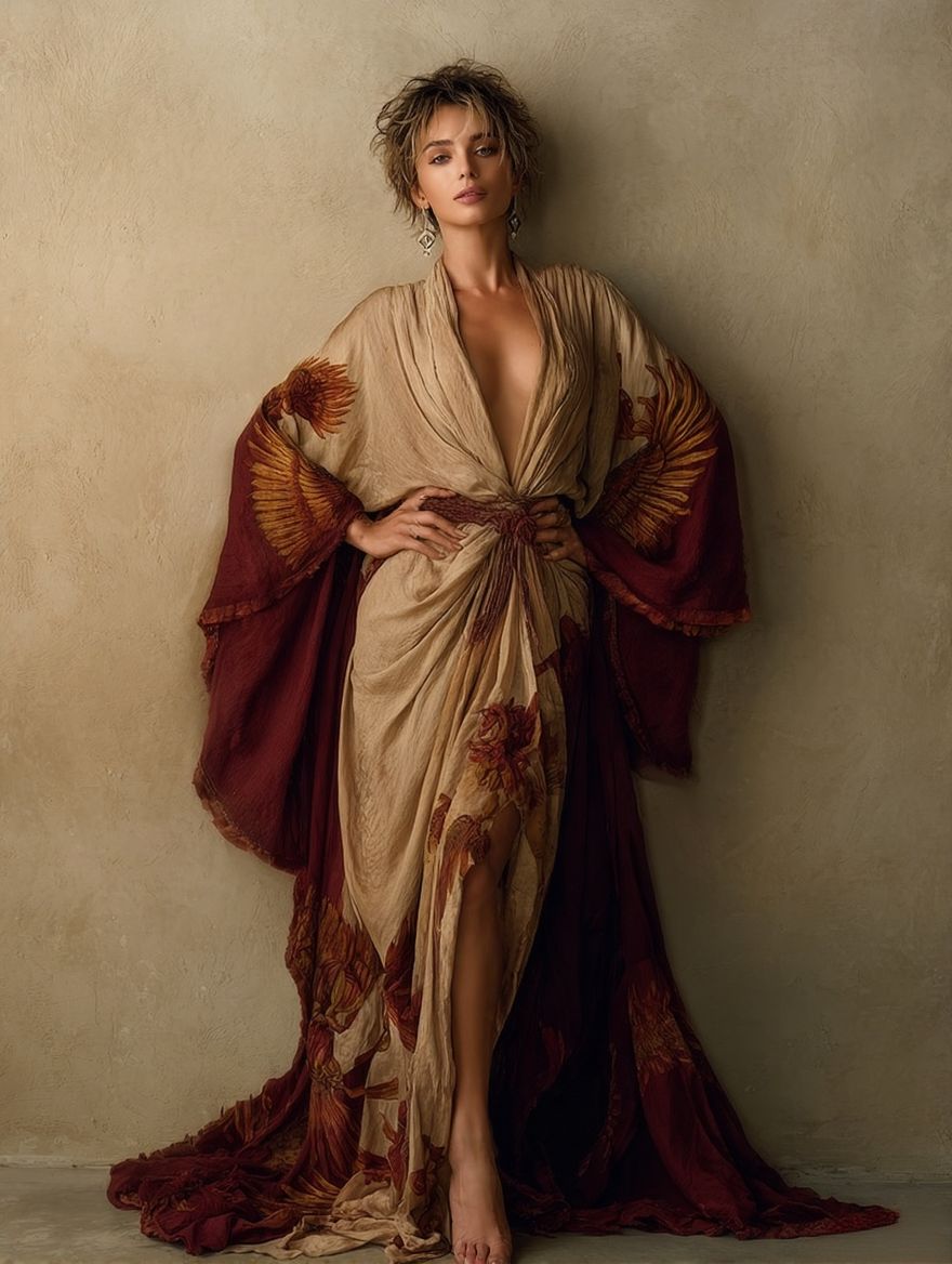 Women's Elegant Abstract Art Print Kimono Robe (Including Belt)$61.74 USD -