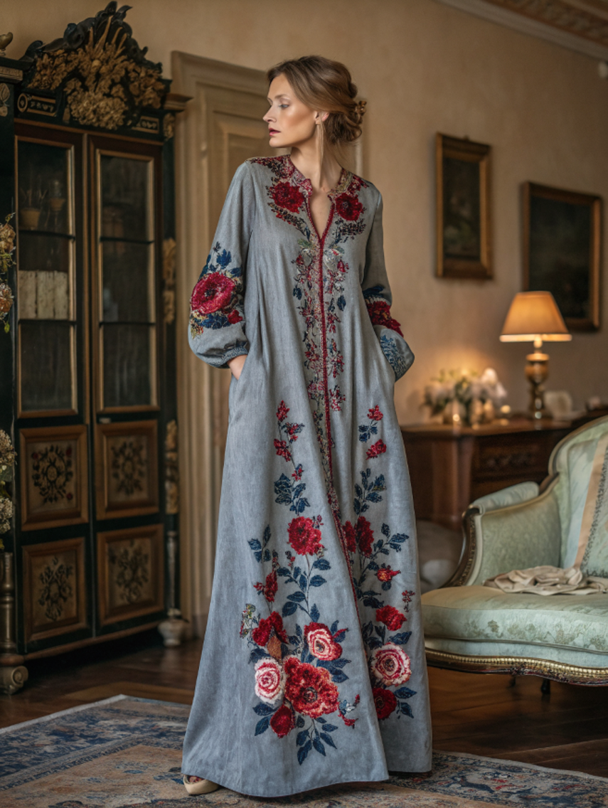 Women's Bohemian Art Pattern V-Neck Long Cover-Up Velvet Skirt$61.74 USD -