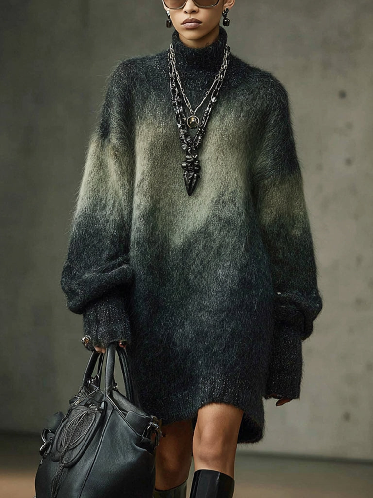 Forest Green Mink Ombre Loose Fit Knit Skater Dress$39.98 USD -