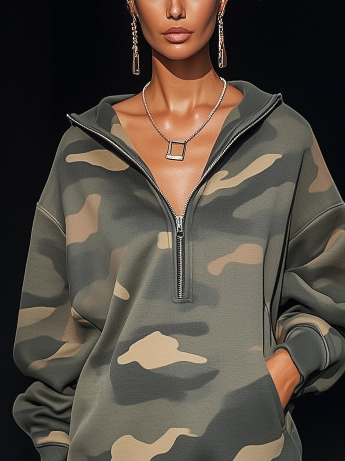 Camouflage Print Sweatshirt Dress With Fringe Hem$39.98 USD -