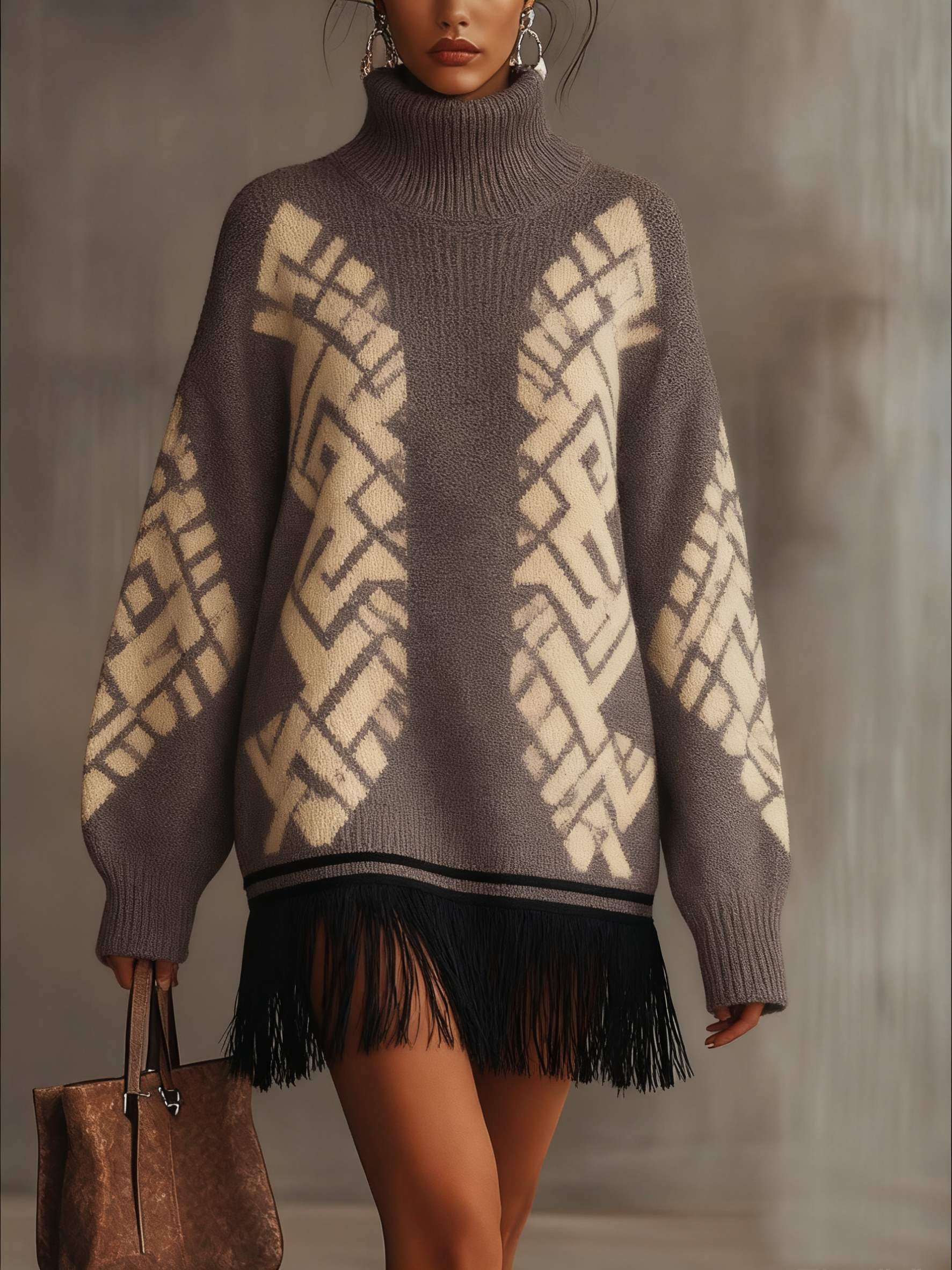 As shown Ruffled Hem Turtleneck Sweater Dress$39.98 USD -