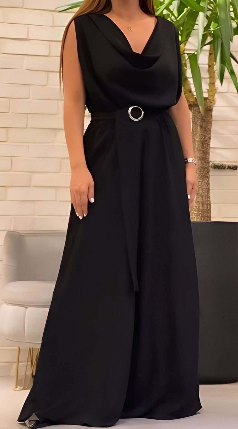 Dark Blue Pleated Cape Draped Maxi Dress$39.98 USD -
