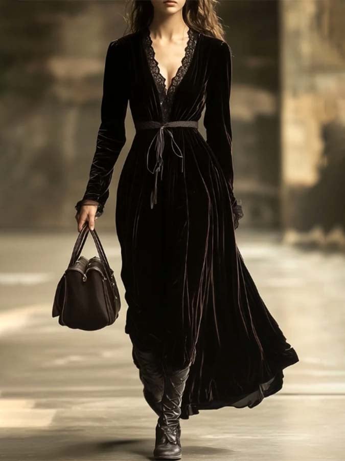 Women'S Retro Lace Panel Dress$51.99 USD -