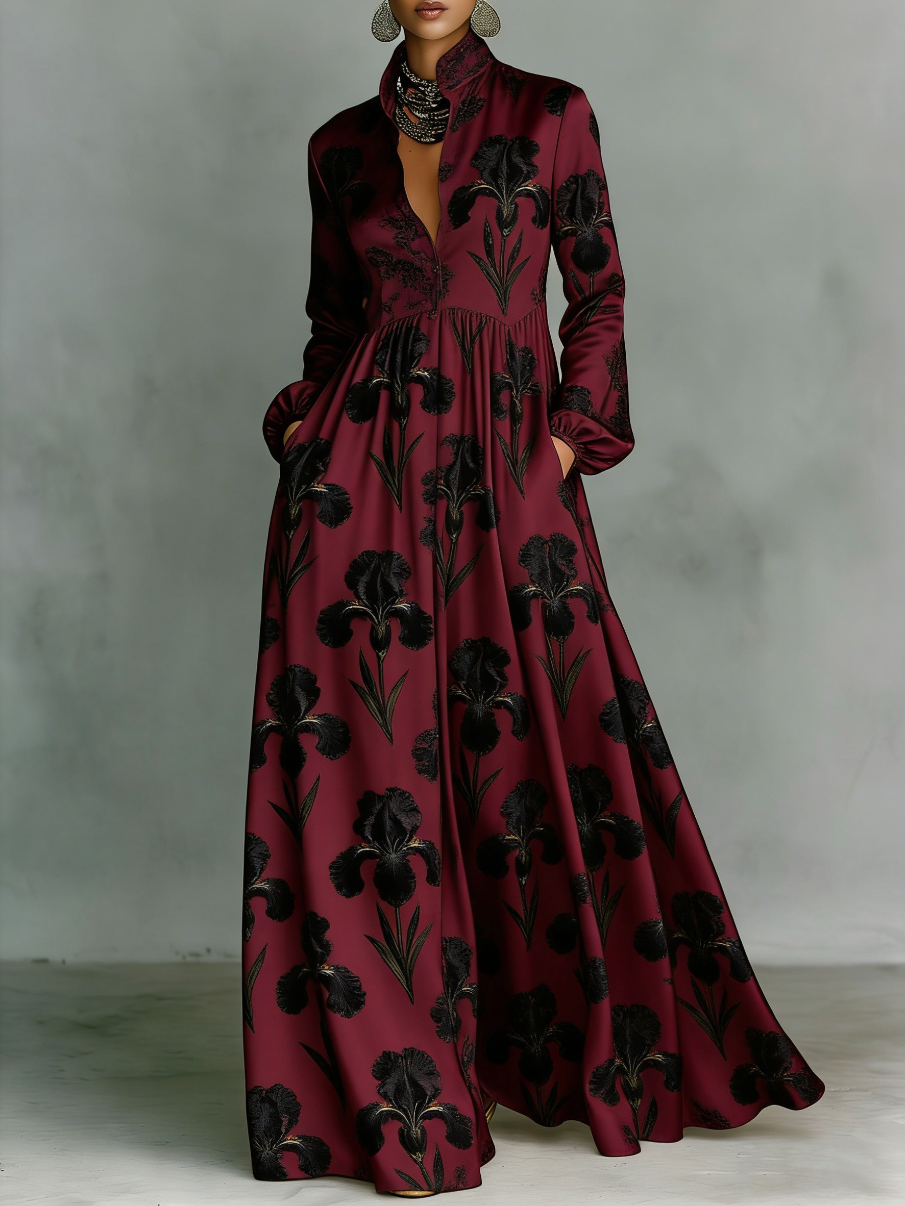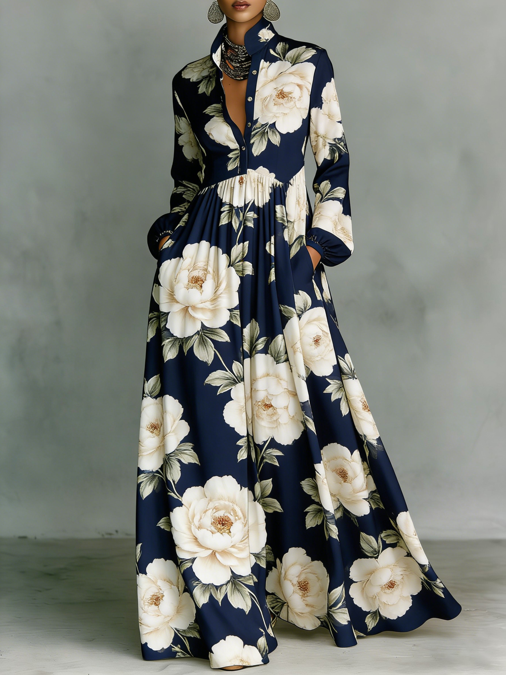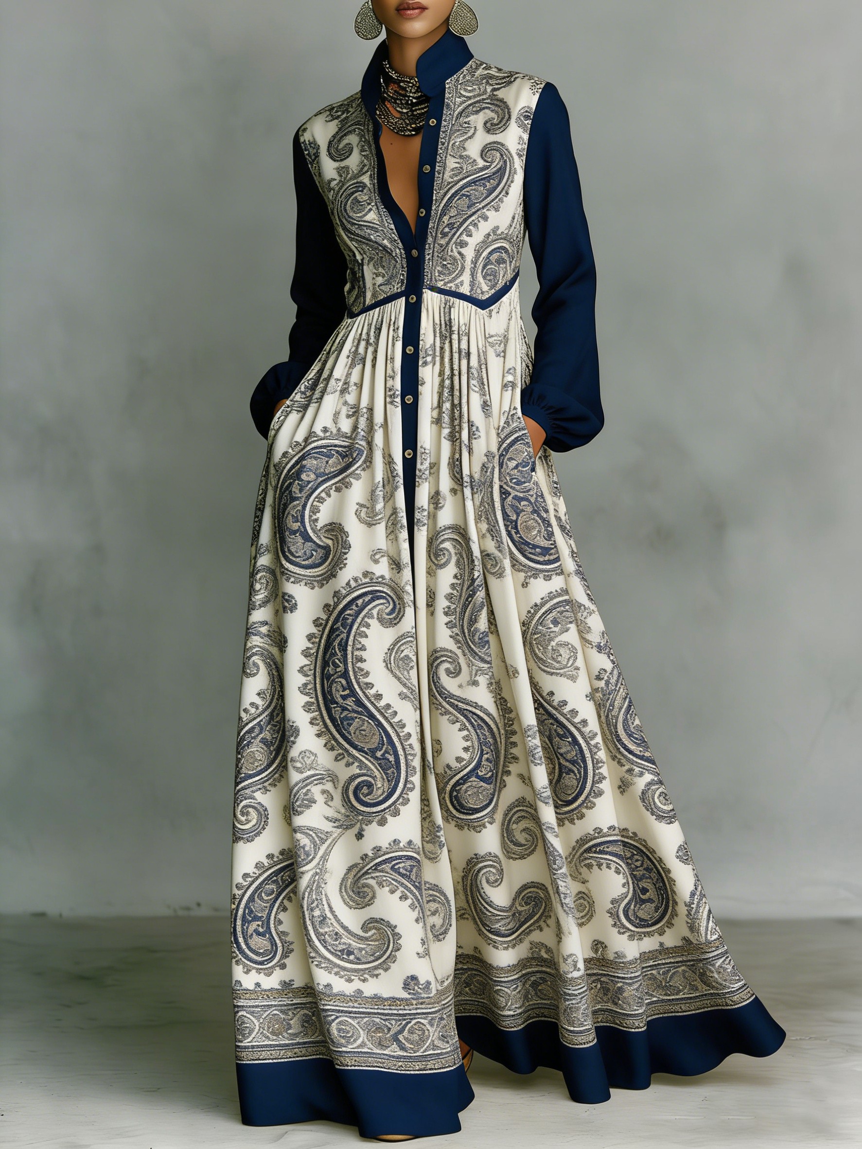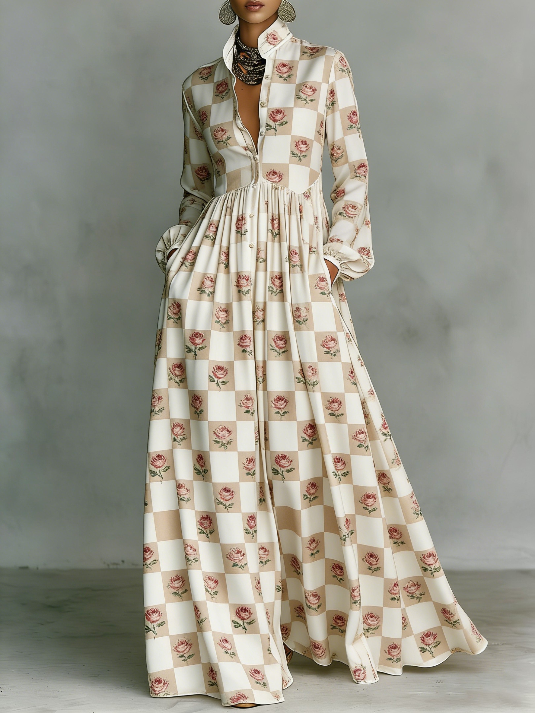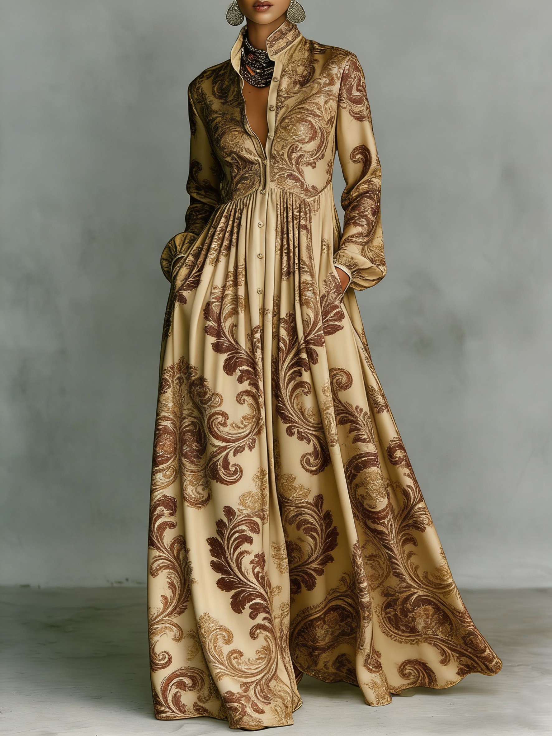 Women's Vintage print Elegant Romantic Vacation Maxi Dress$48.99 USD