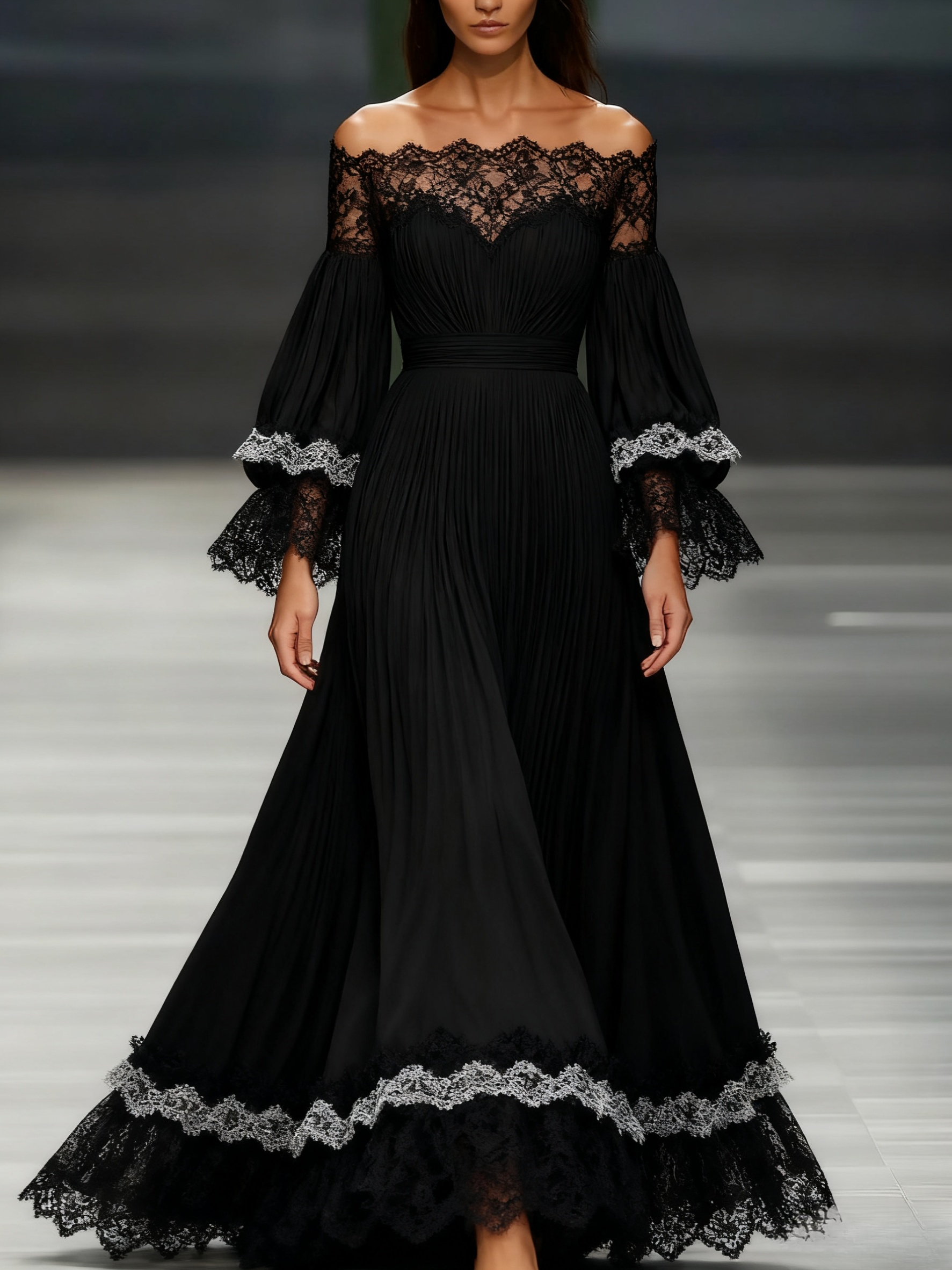 This off-shoulder long sleeve chiffon maxi dress is perfect for those seeking a blend of elegance and romance. Its timeless design and beautiful green hue make it a standout piece for special occasions.