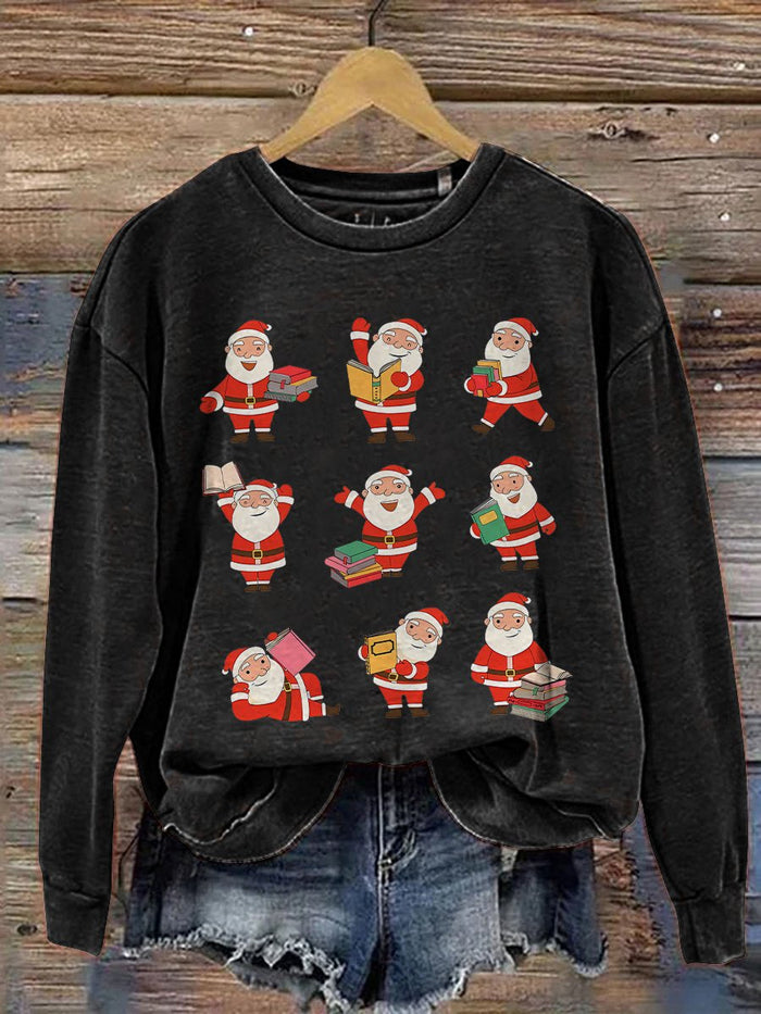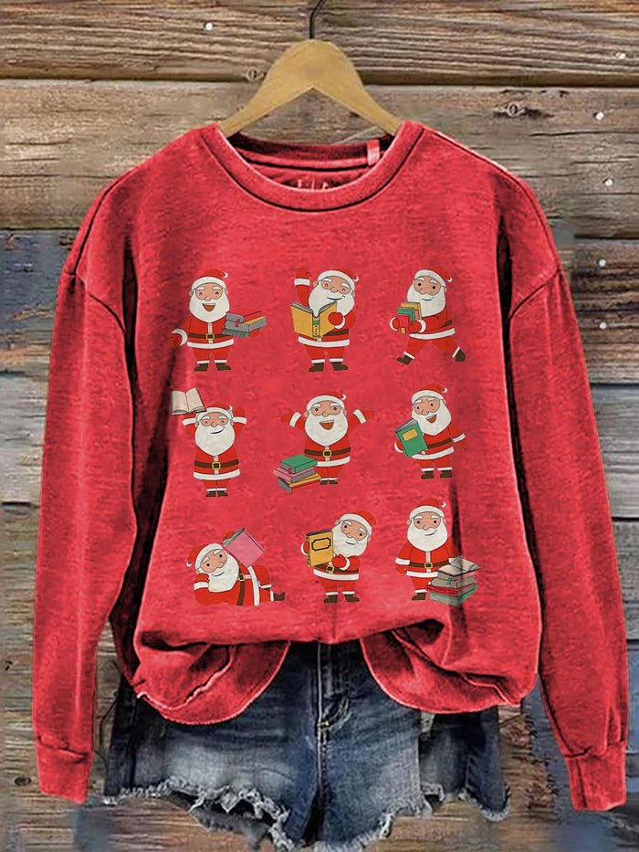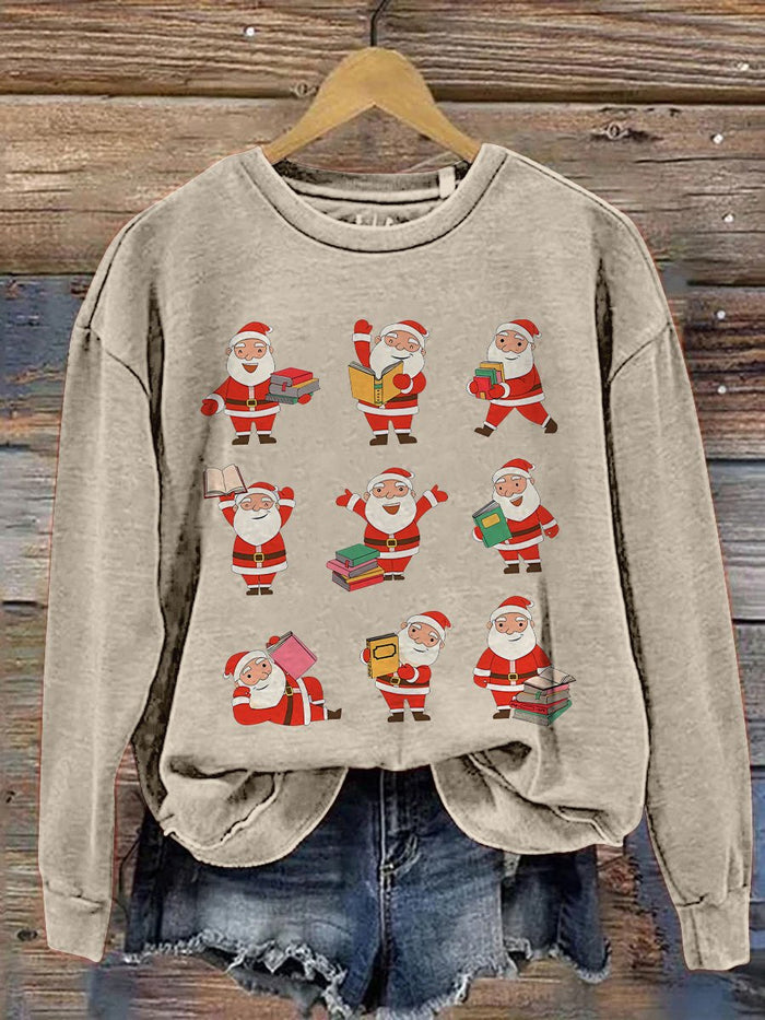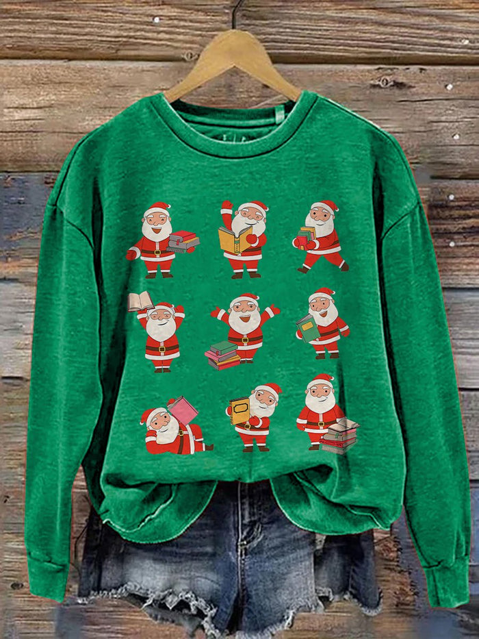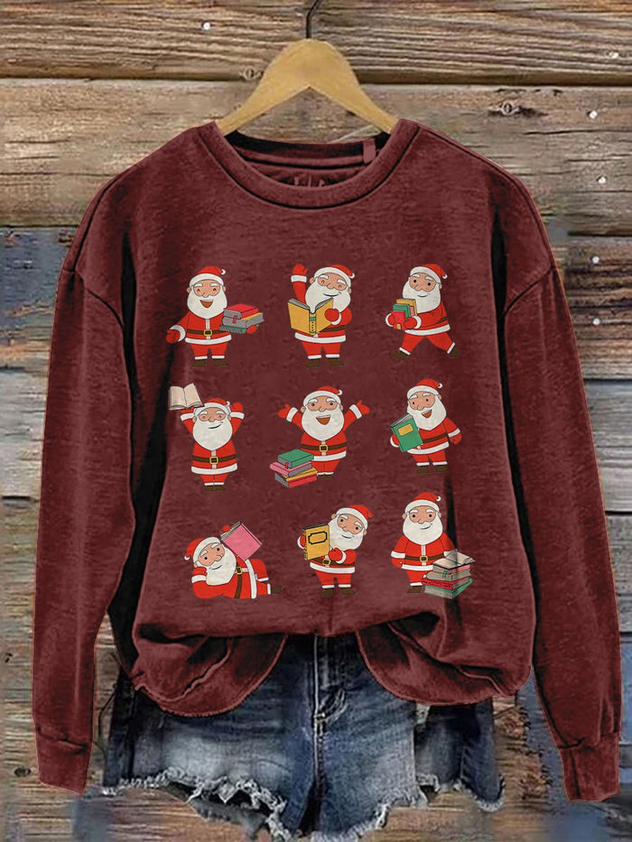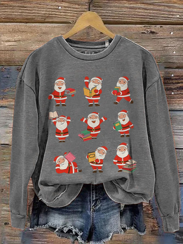 Christmas Reading Merry Teacher Santa Reading Book Lover Print Casual Sweatshirt