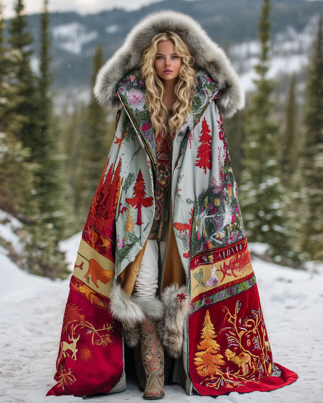 Christmas themed elegant contrasting color hooded cape top coat 3510
