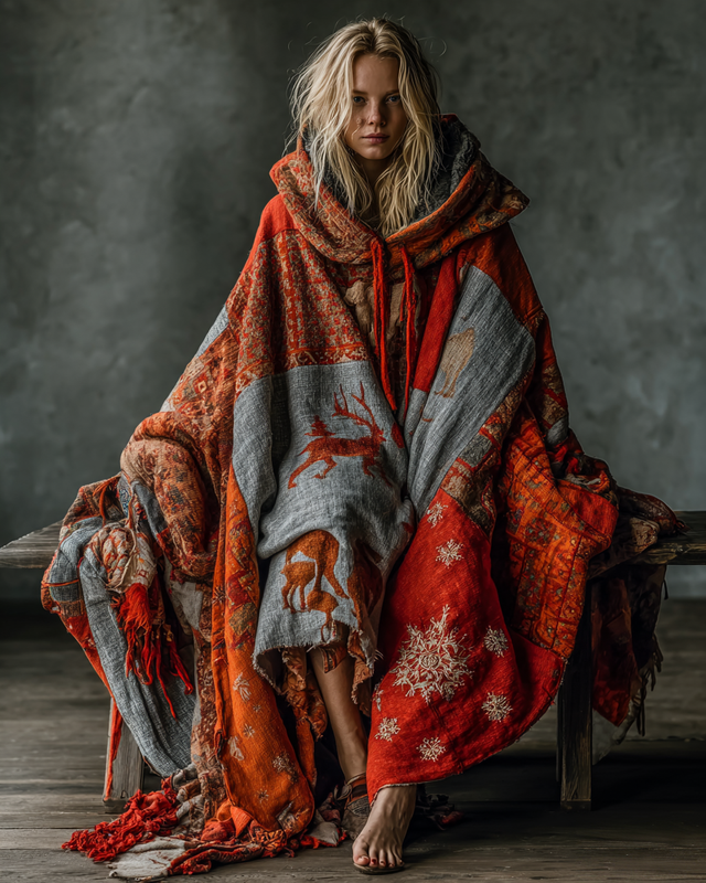 Christmas themed elegant contrasting color hooded cape top coat 6616