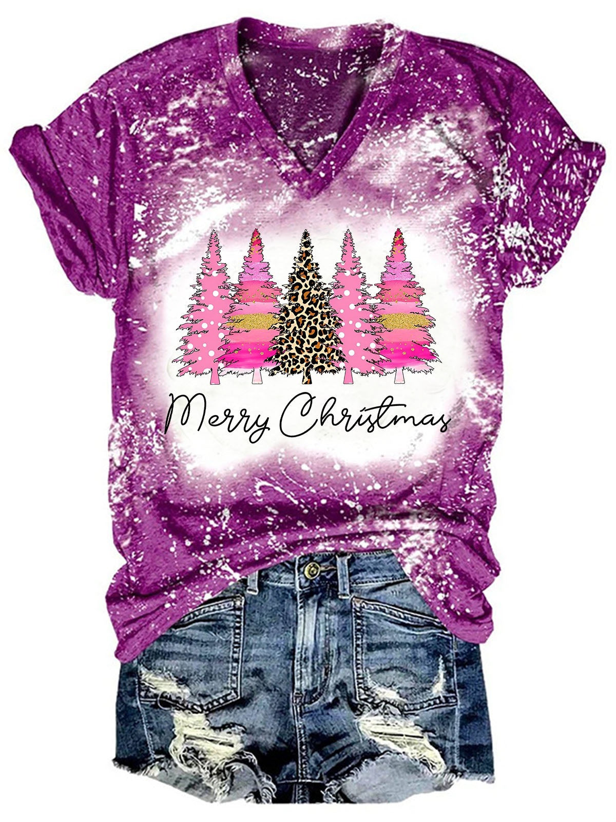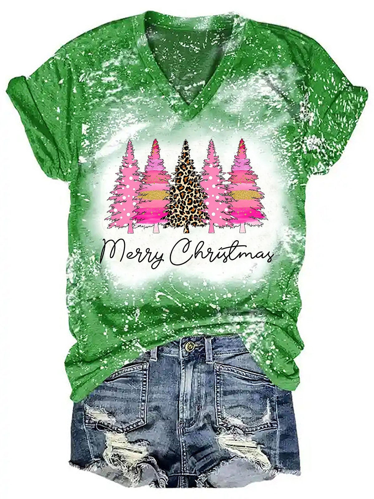 Christmas Tree Tie Dye V-Neck T-Shirt
