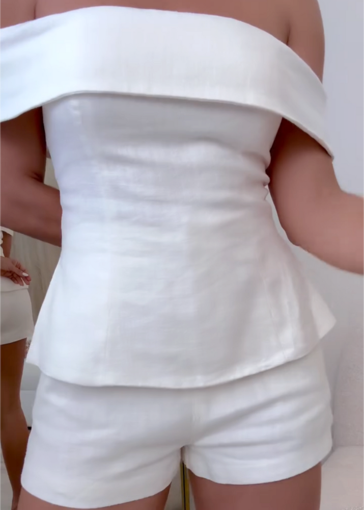 White Cotton and Linen Two-piece Suit