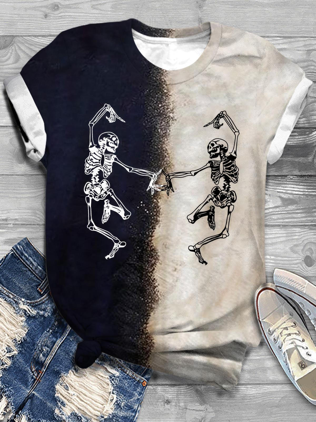 Dancing Skull Print Crewneck T-Shirt