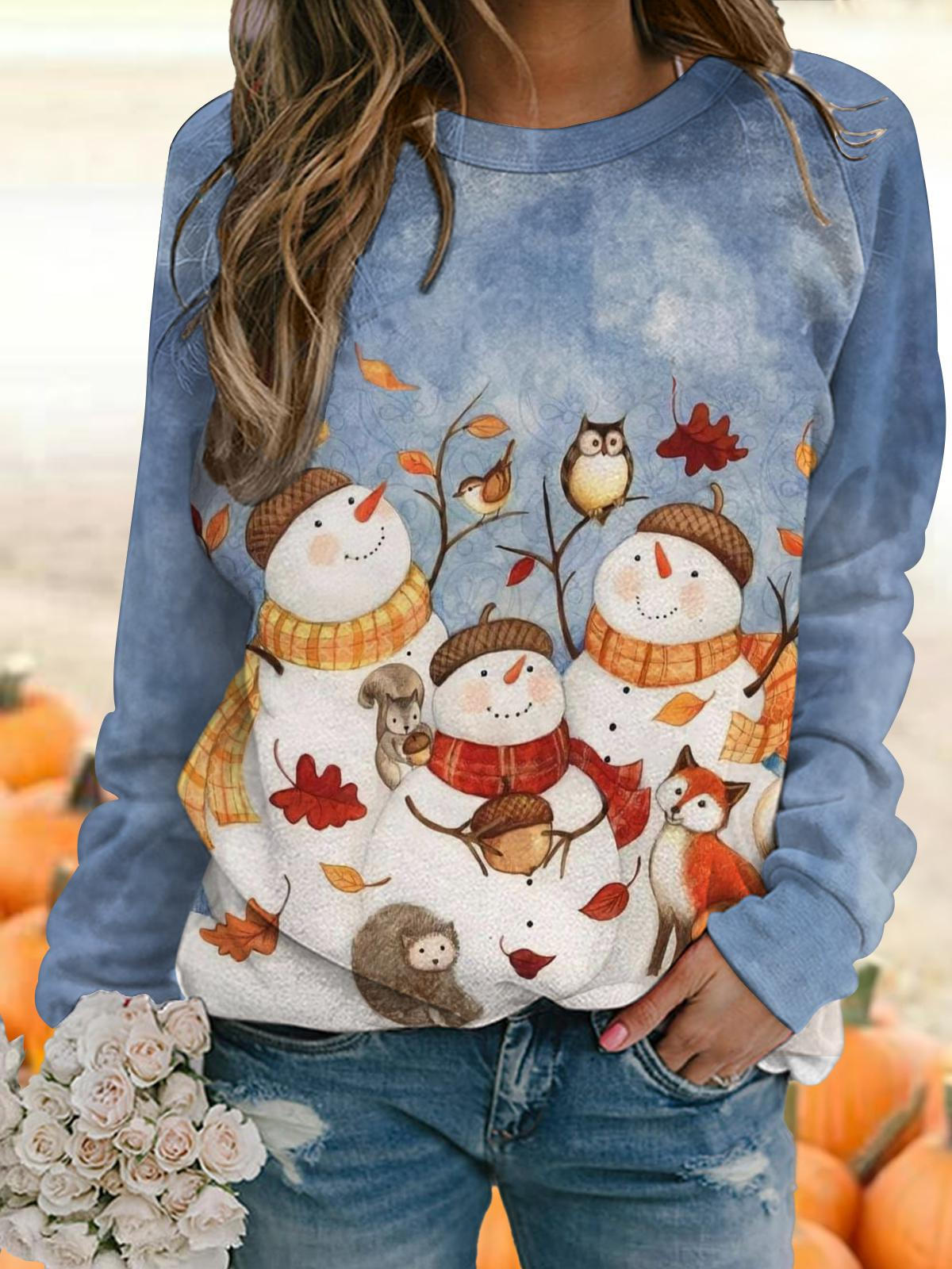 Fall Snommans Printed Long Sleeve Top