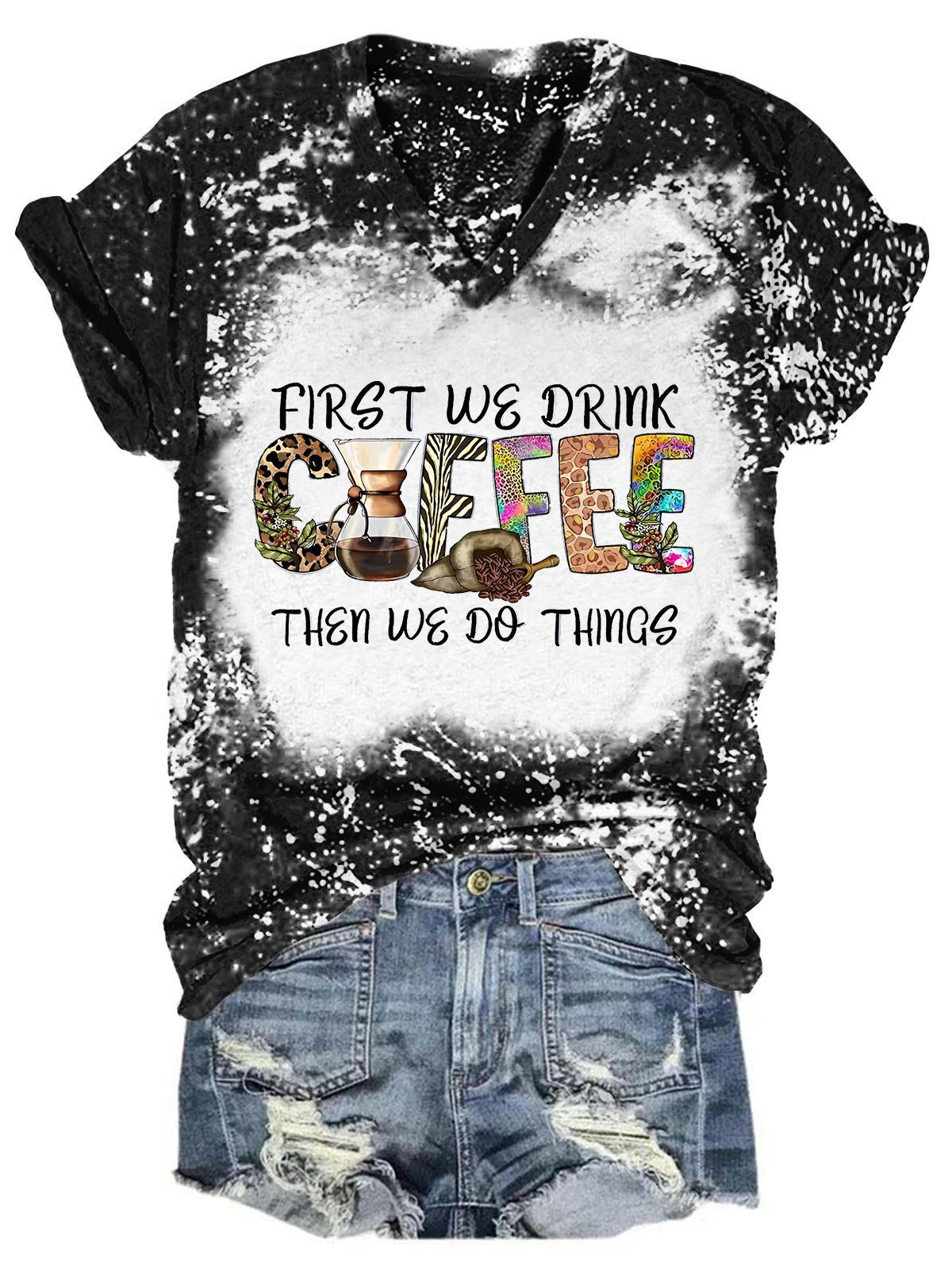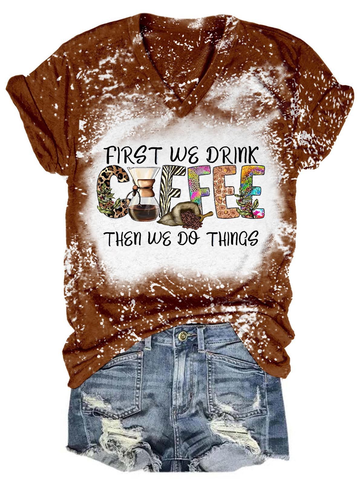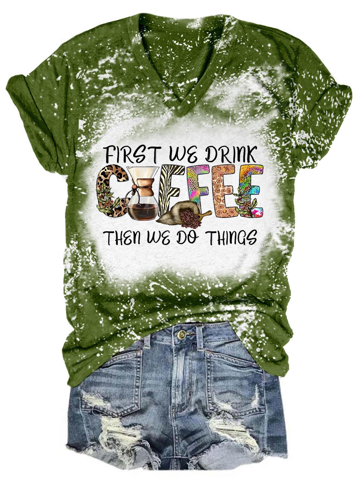 First We Drink Coffee Then We Do Things Tie Dye V Neck T-shirt