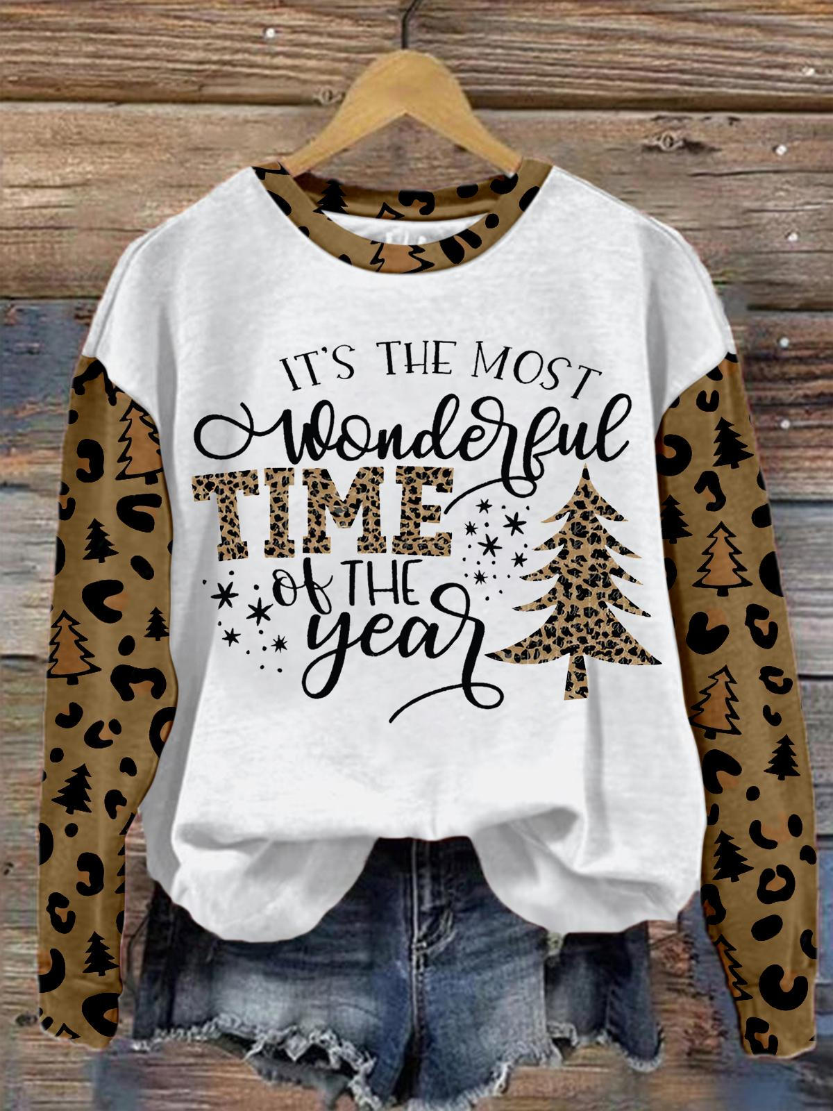 It's The Most Wonderful Time Of The Year Leopard Long Sleeve Top