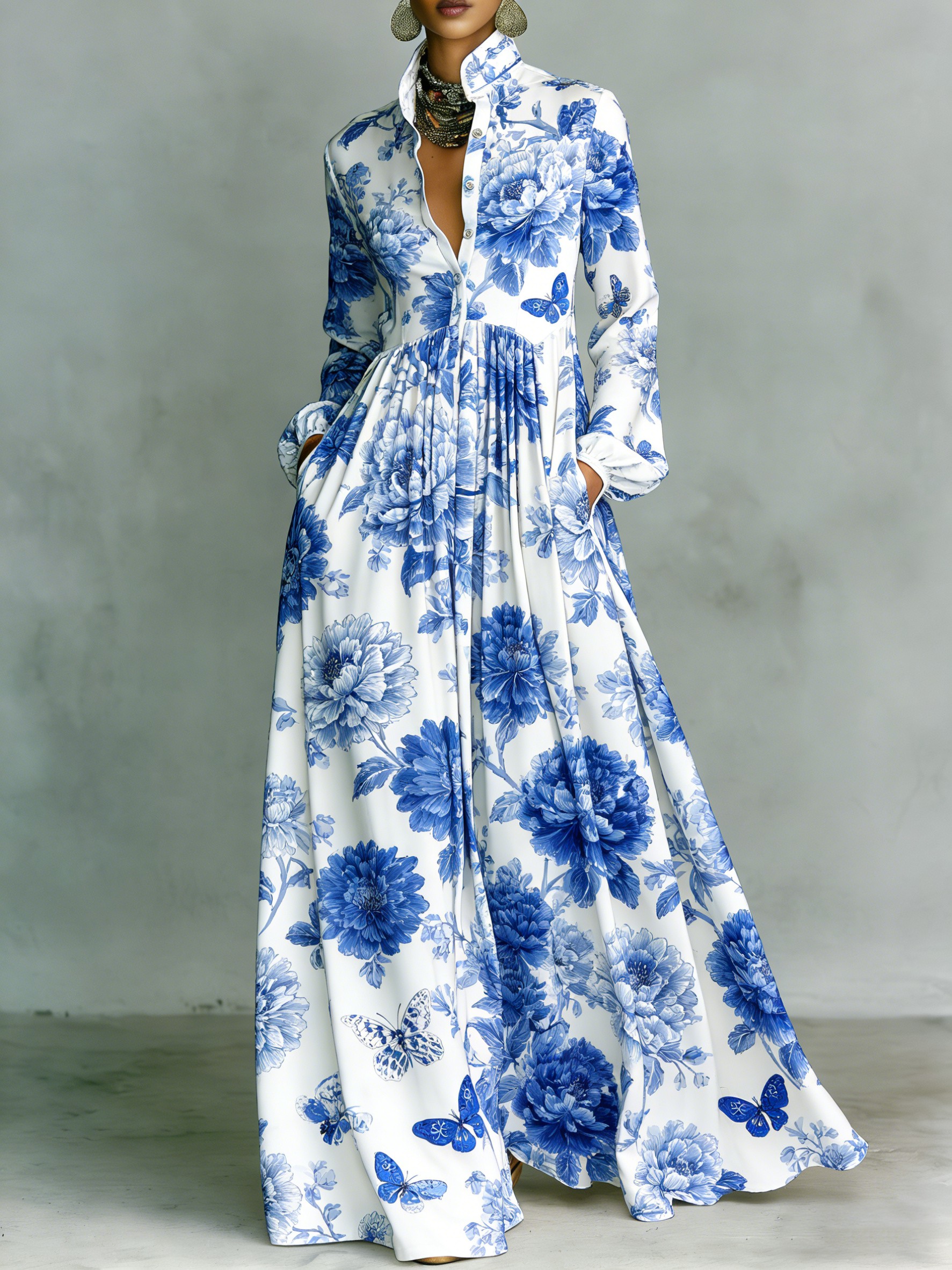 Women's Vintage print Elegant Romantic Vacation Maxi Dress