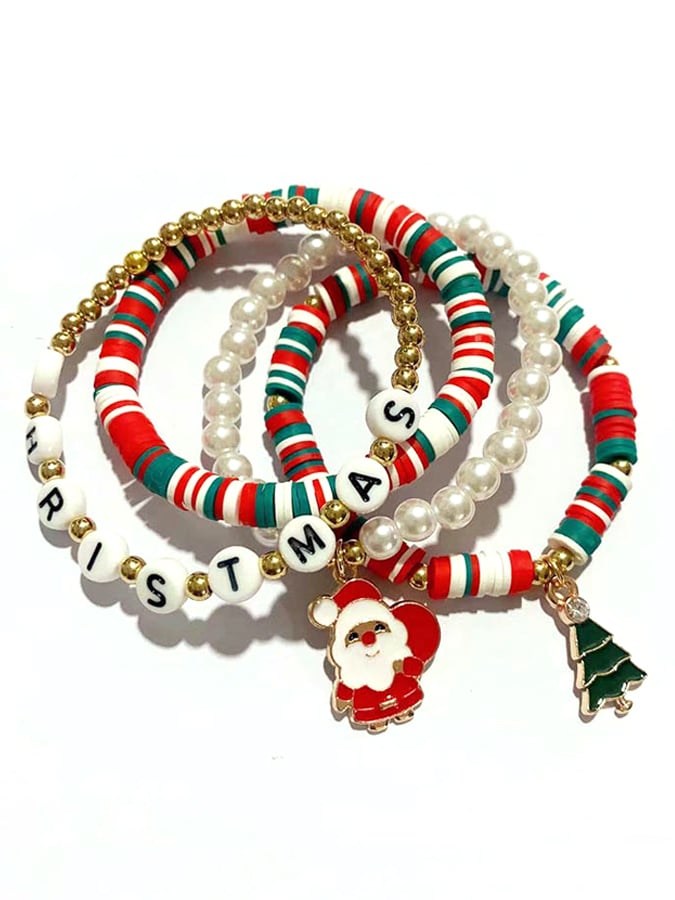 Merry Christmas Santa Claus Pottery Bracelet (Contains 4)