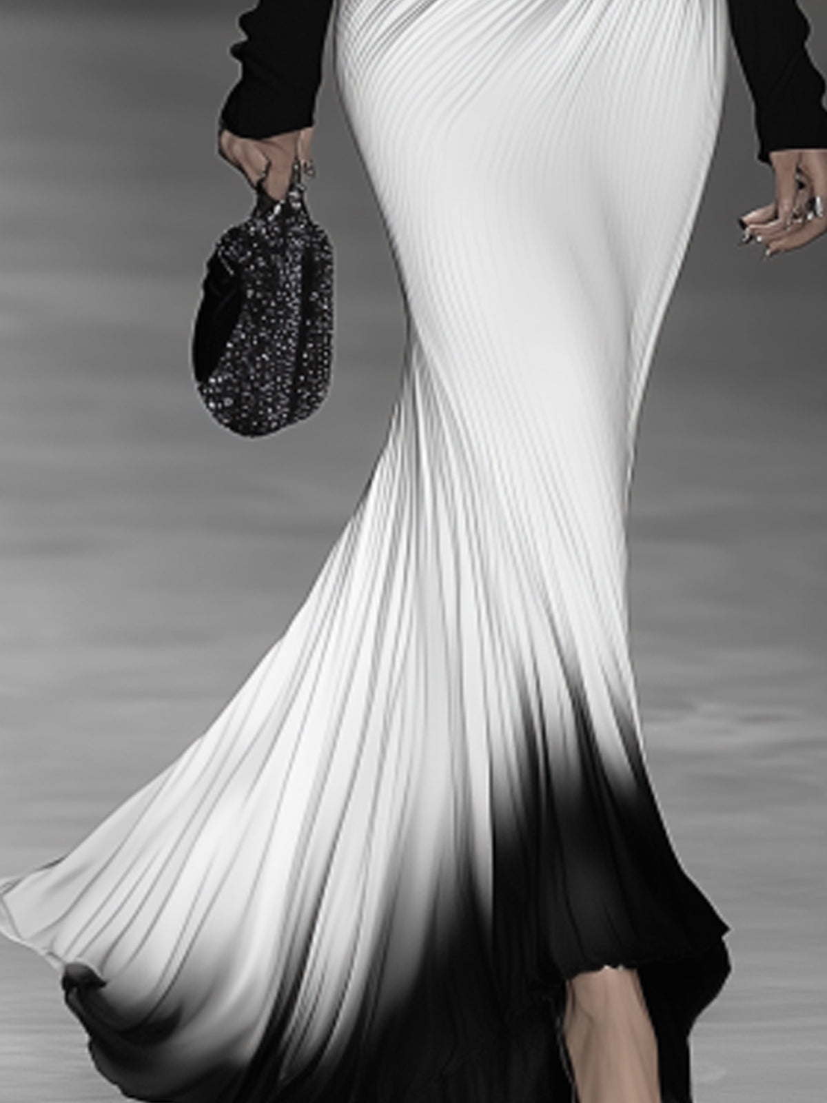 This stunning maxi dress features a graceful black-to-white gradient design with a chic off-shoulder neckline, adding a touch of sophistication and charm. The flowing silhouette enhances movement, making it an excellent choice for elegant occasions.