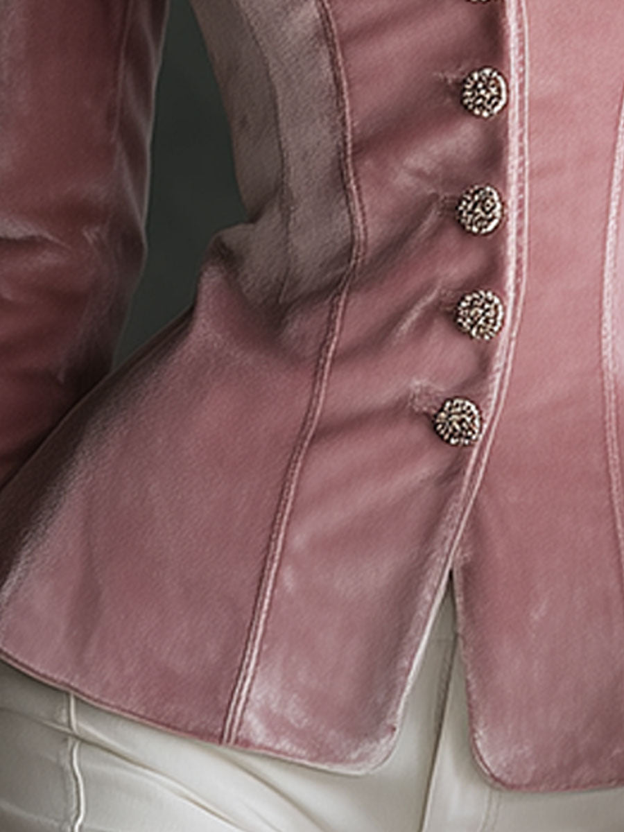 This retro elegant three-dimensional floral pink lapel blazer is a striking piece that merges classic tailoring with creative design elements. The blazer's delicate pink hue provides a soft yet impactful foundation, embodying sophistication and femininity. What sets this blazer apart is its three-dimensional floral embellishments that add depth and artistic flair to the garment. These intricately crafted flowers are strategically placed, offering texture and movement, making the blazer not just a piece of clothing but a wearable work of art. The traditional lapel design maintains the blazer’s classic roots, while the unique floral details elevate it into the realm of high fashion.