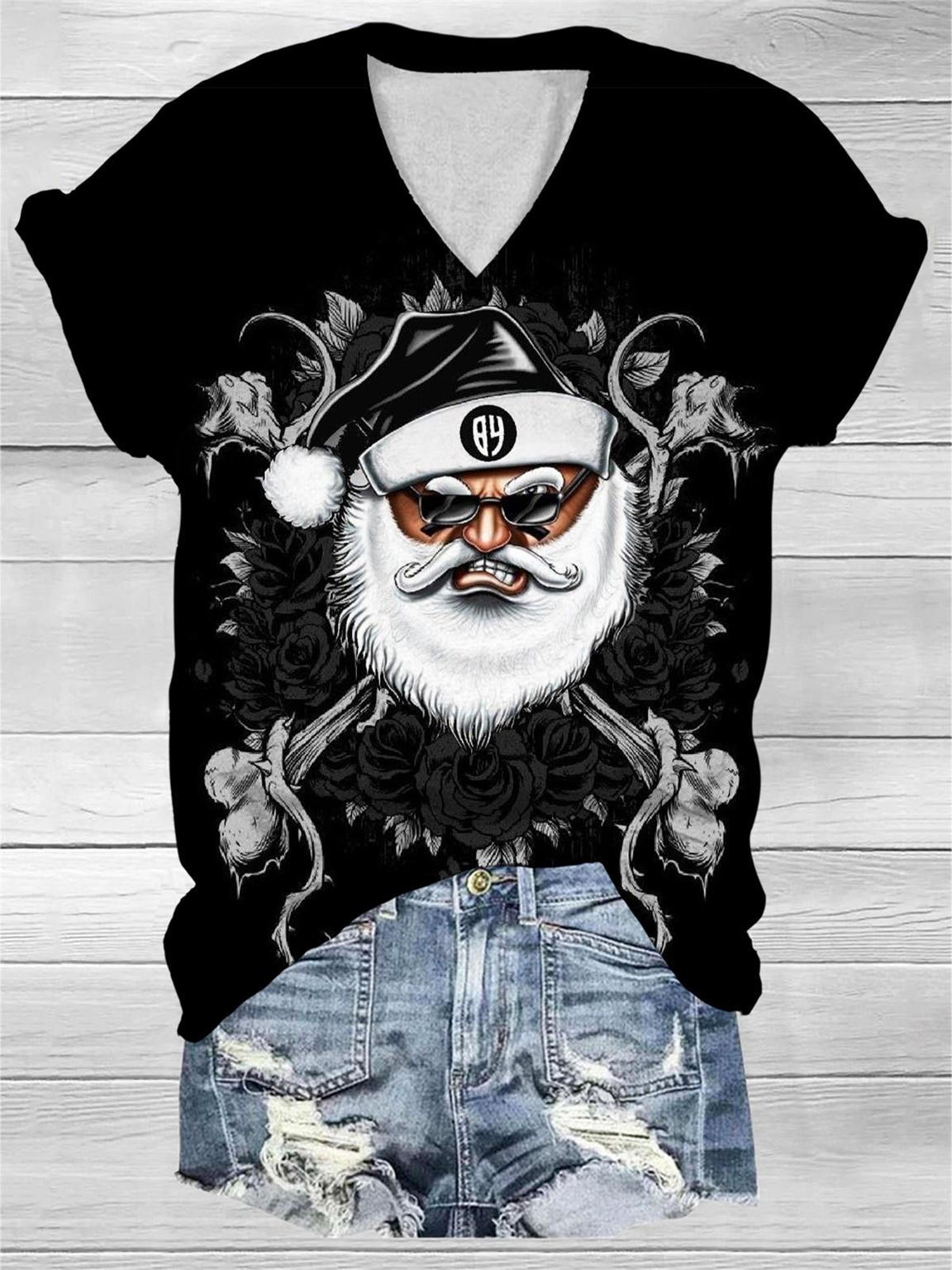 Santa Print V-Neck T-Shirt
