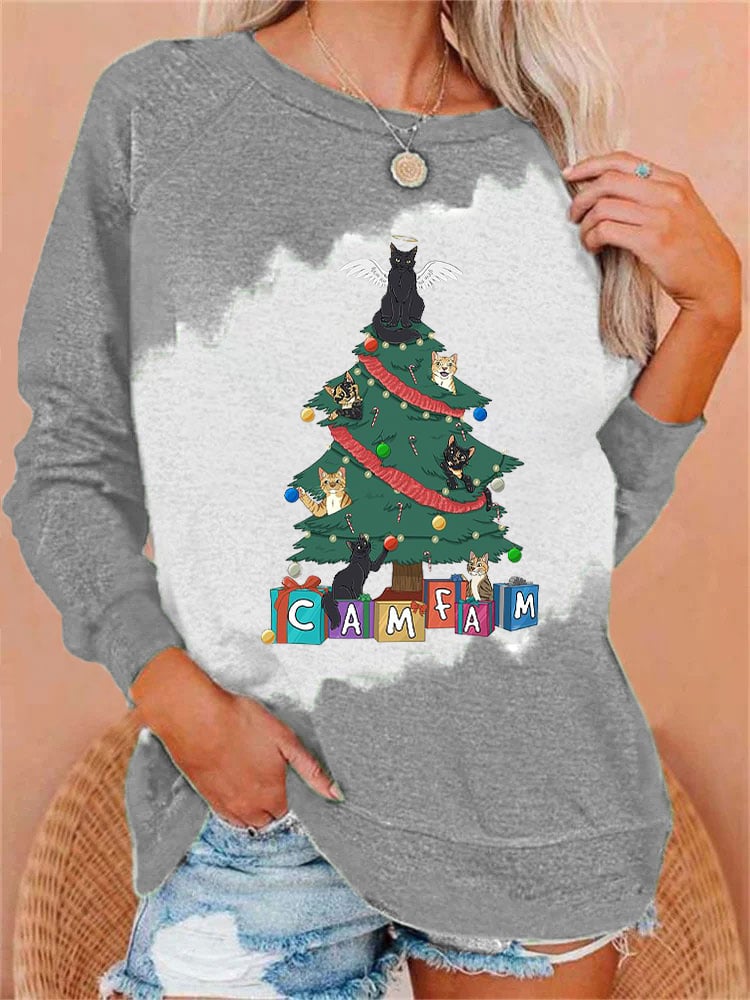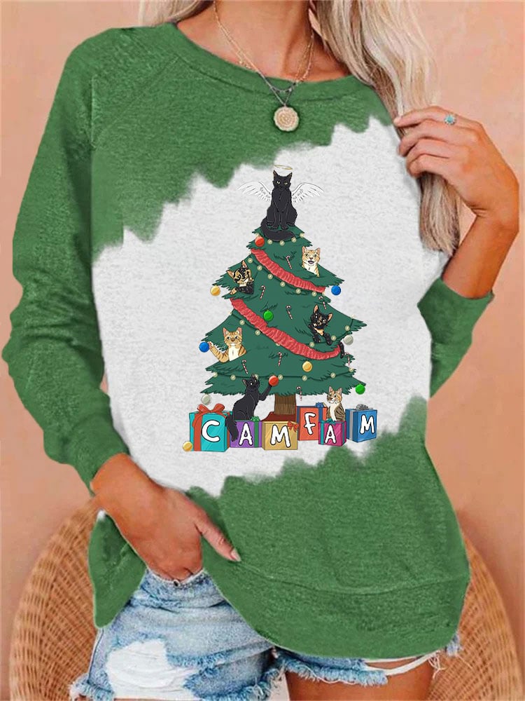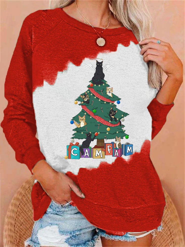 Women's Camfam Christmas Printed Round Neck Long Sleeve Sweatshirt