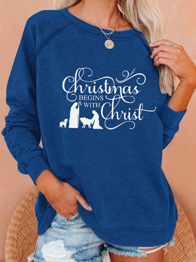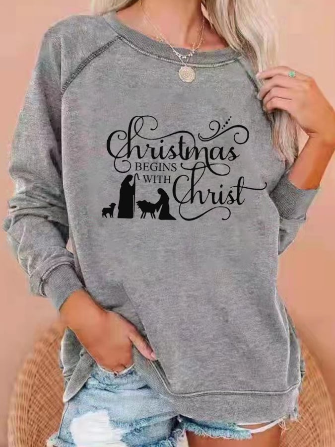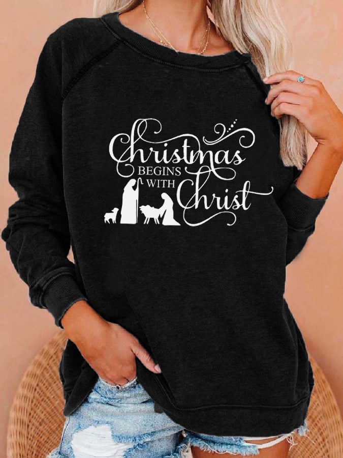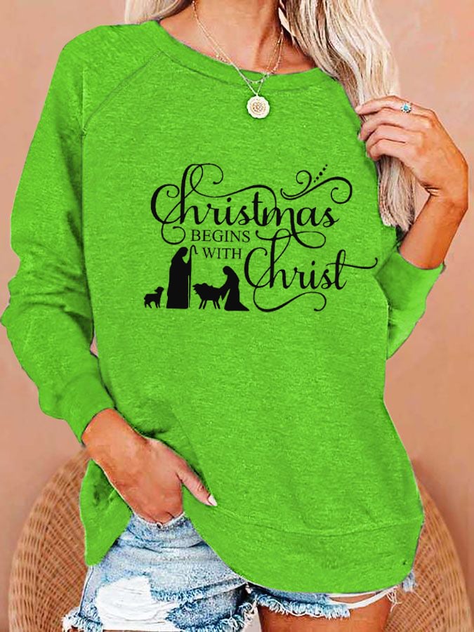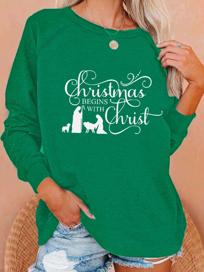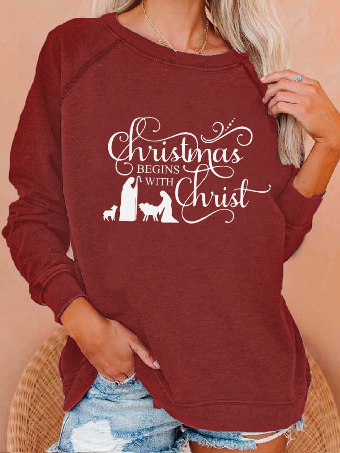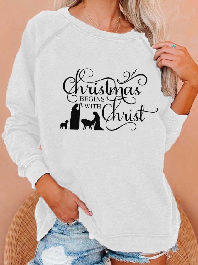 Women's "Christmas Begins With Christ" printed casual sweatshirt