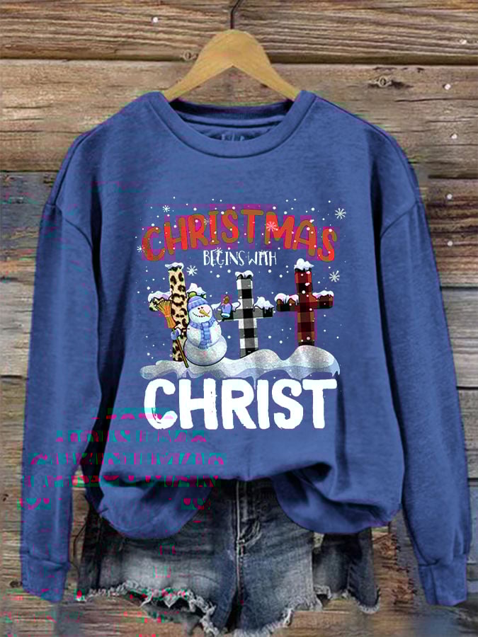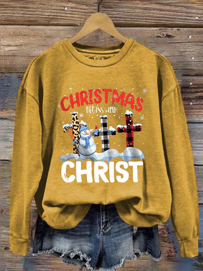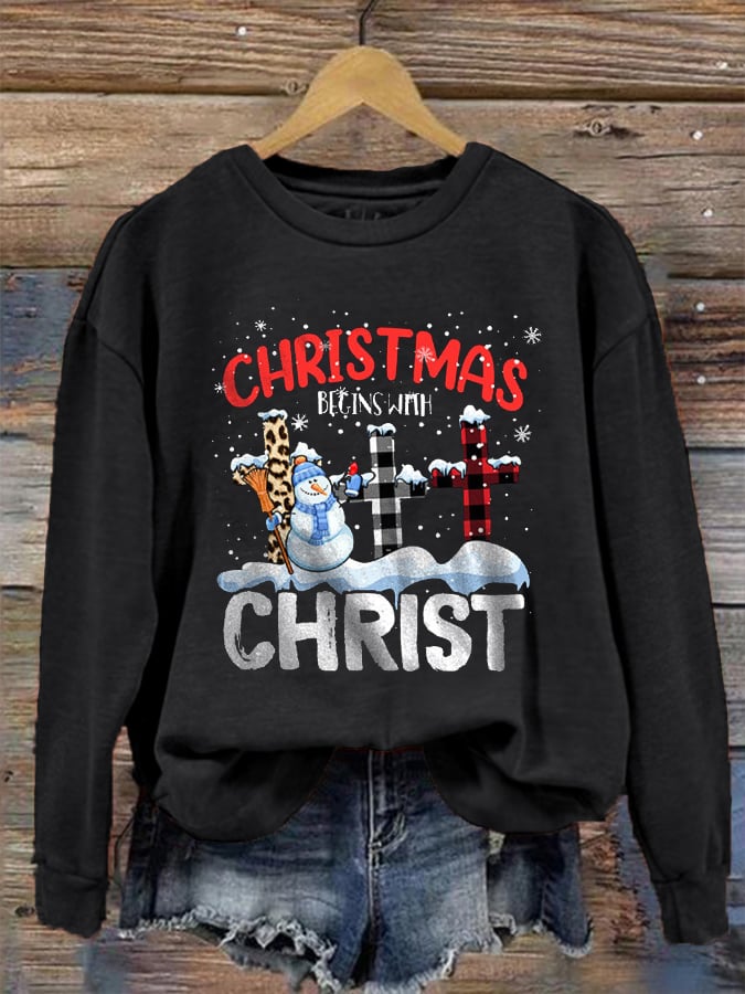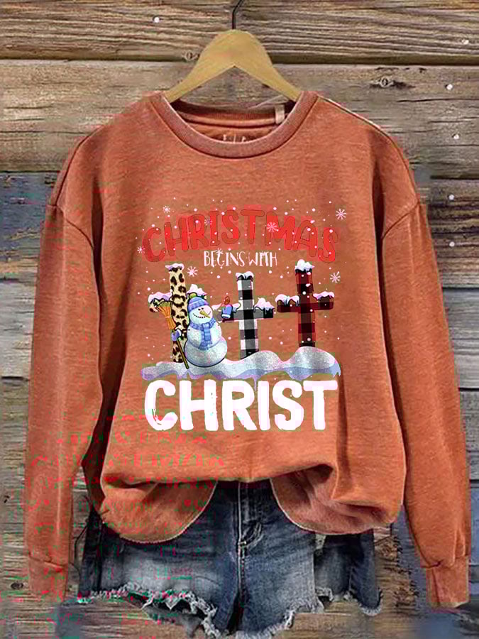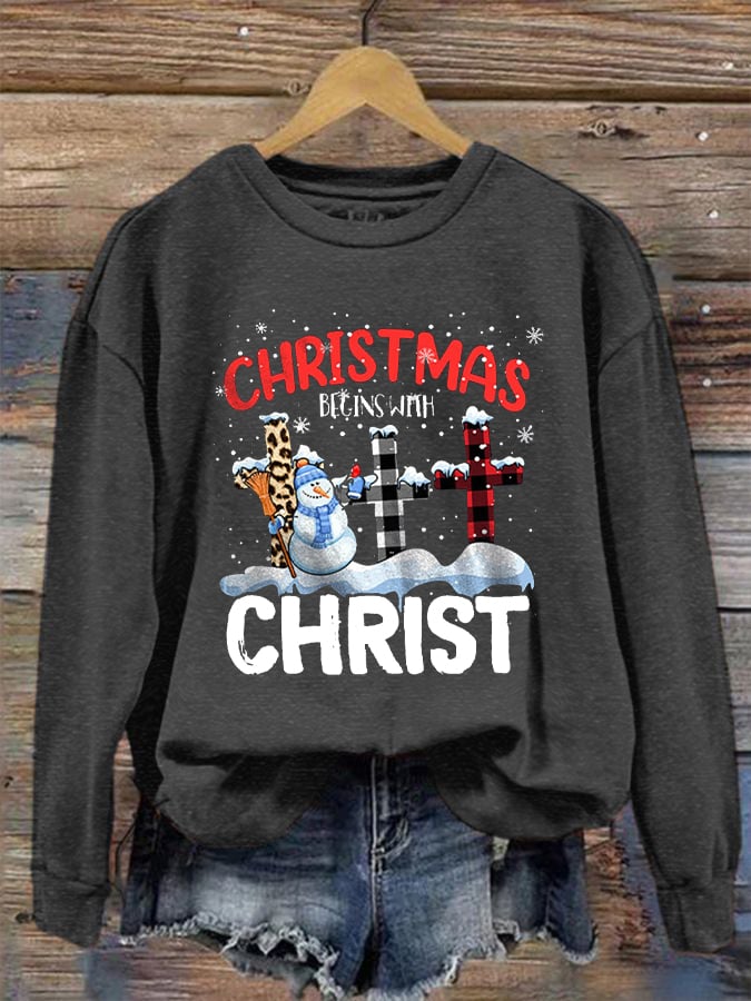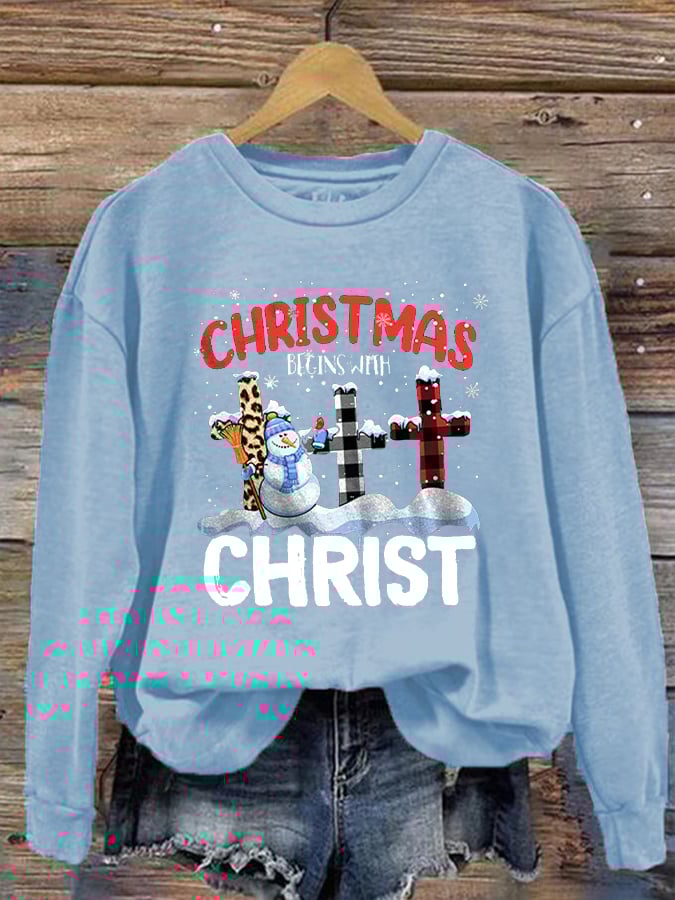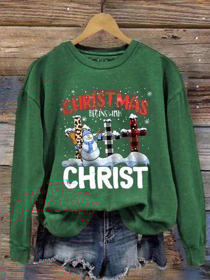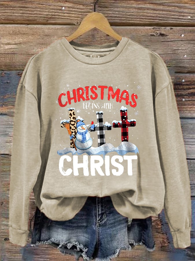 Women's "Christmas Begins With Christ" printed casual sweatshirt