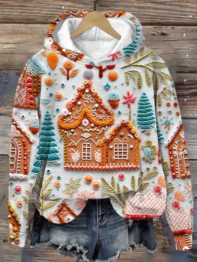 Women's Christmas Gingerbread House Print Hoodie