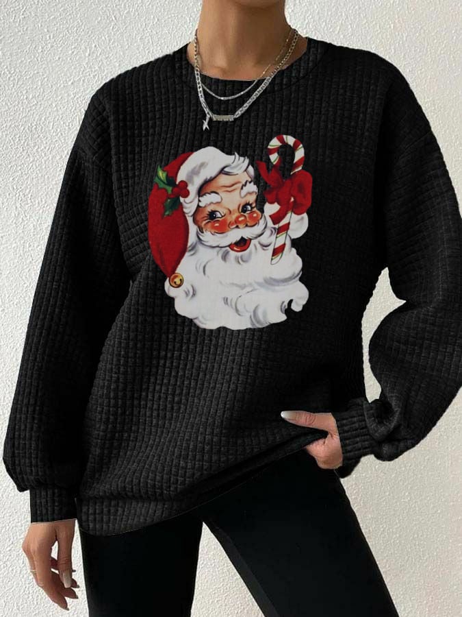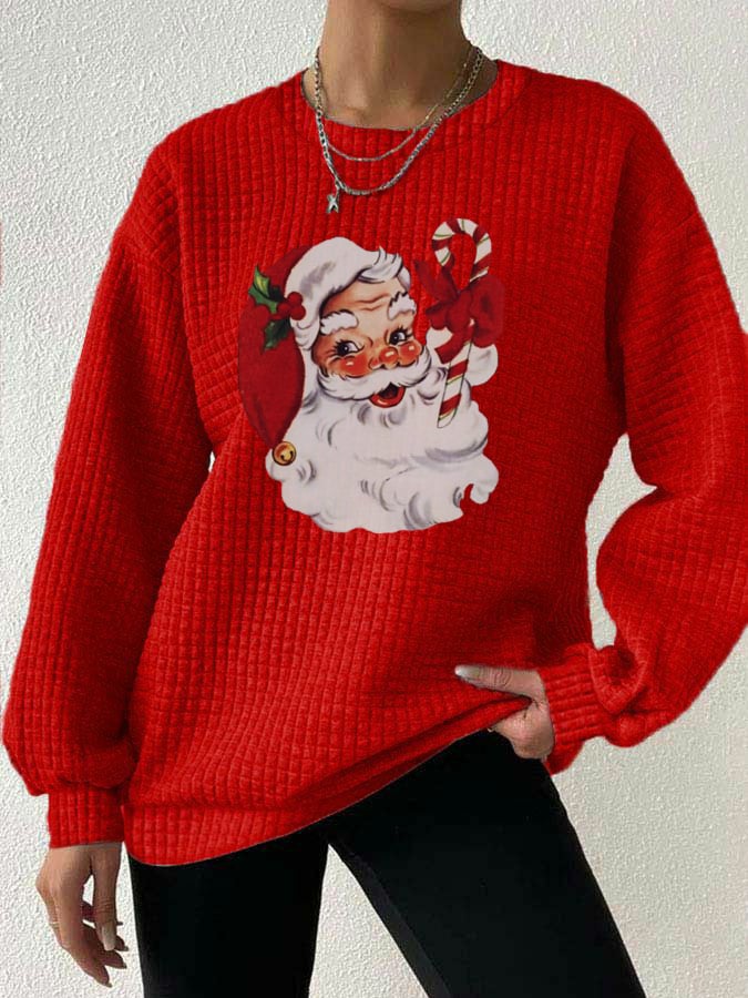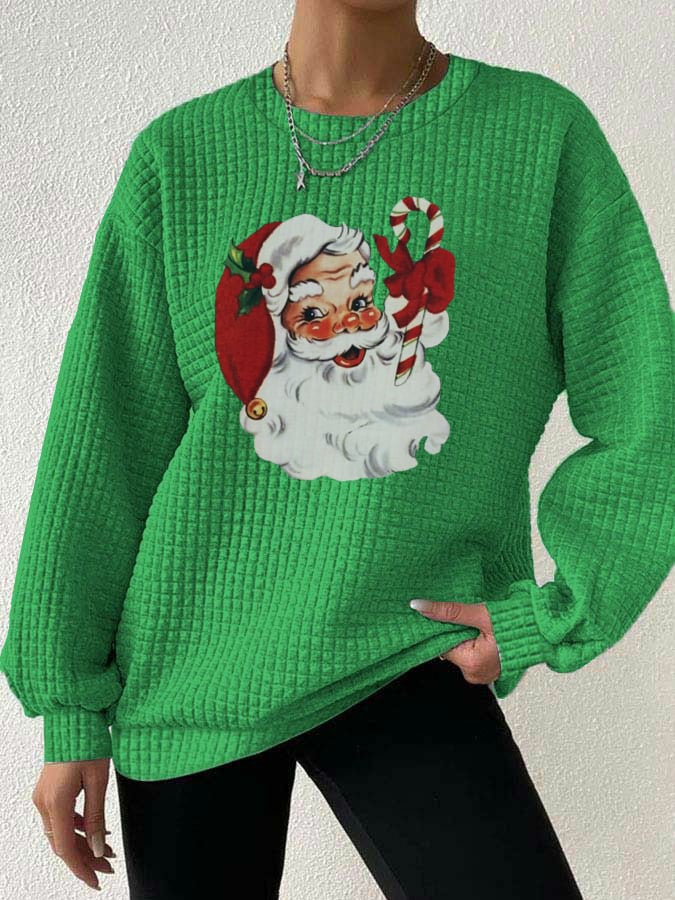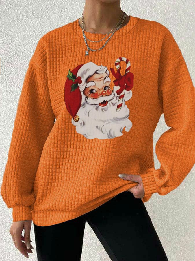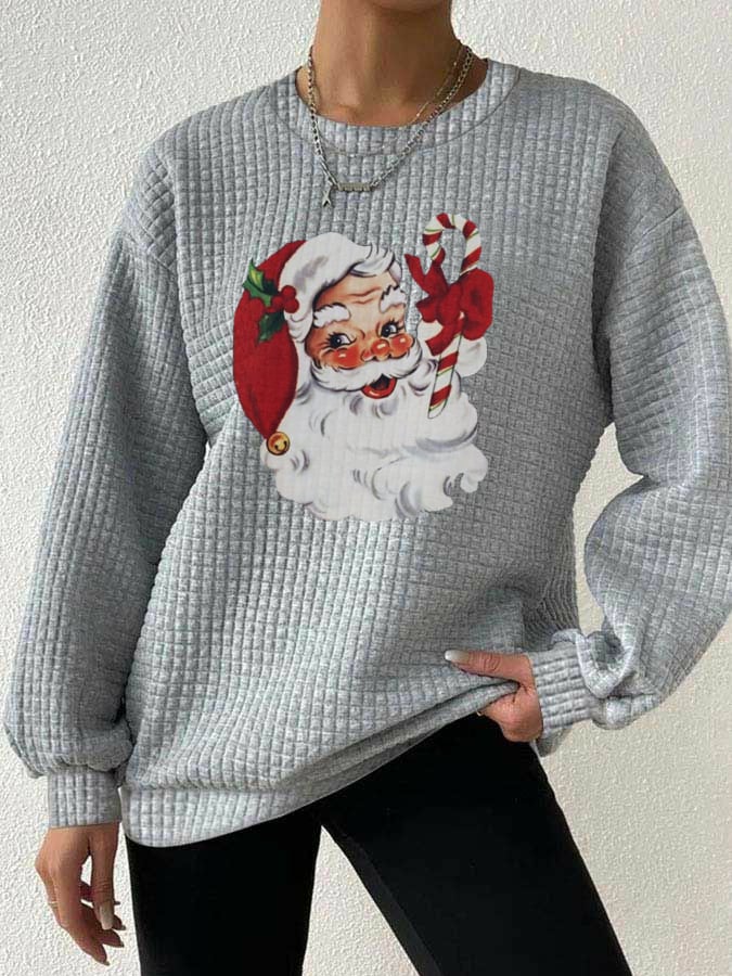 Women's Christmas Santa Print Waffle Sweatshirt