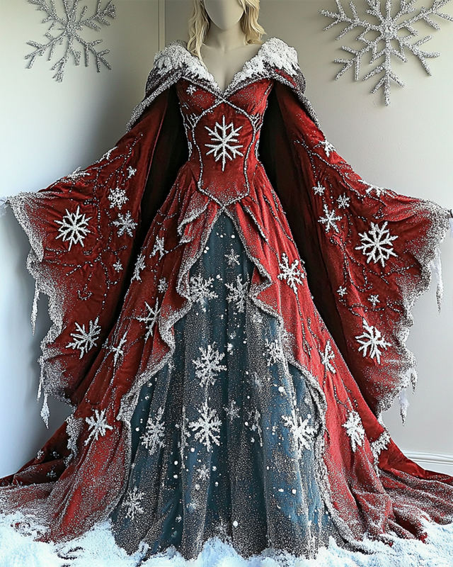 Women's Christmas-Themed Gradient Snowflake Beaded Embroidered Dress 1910