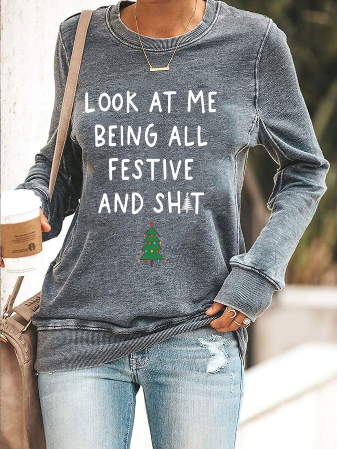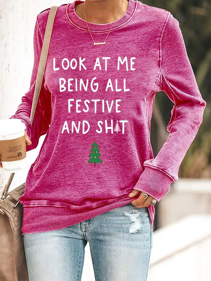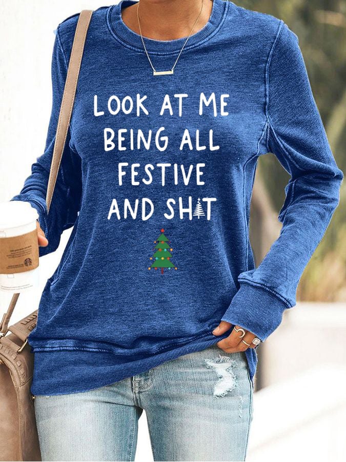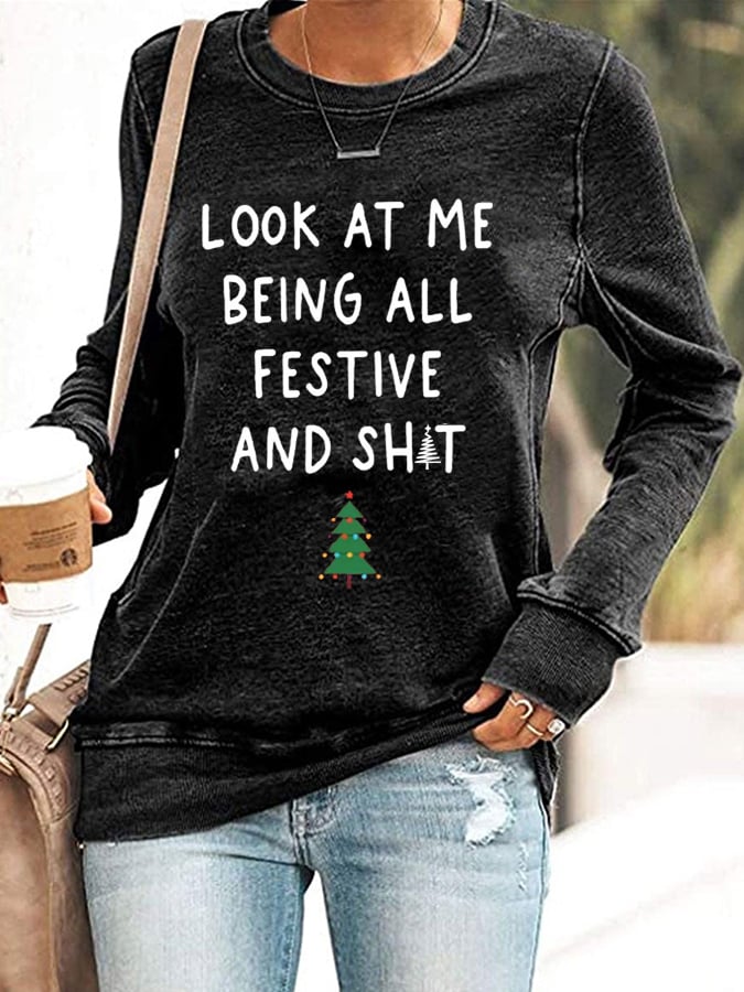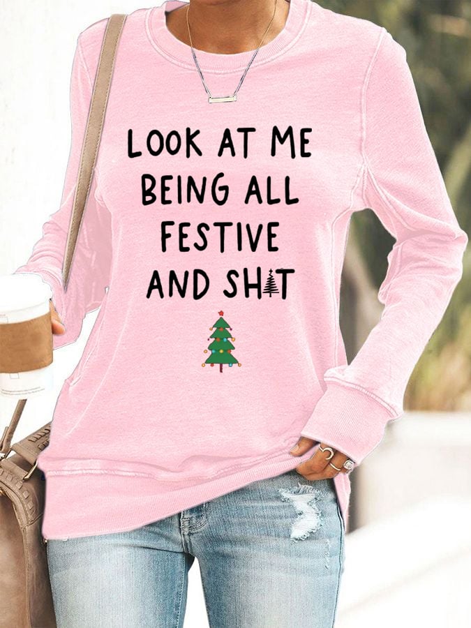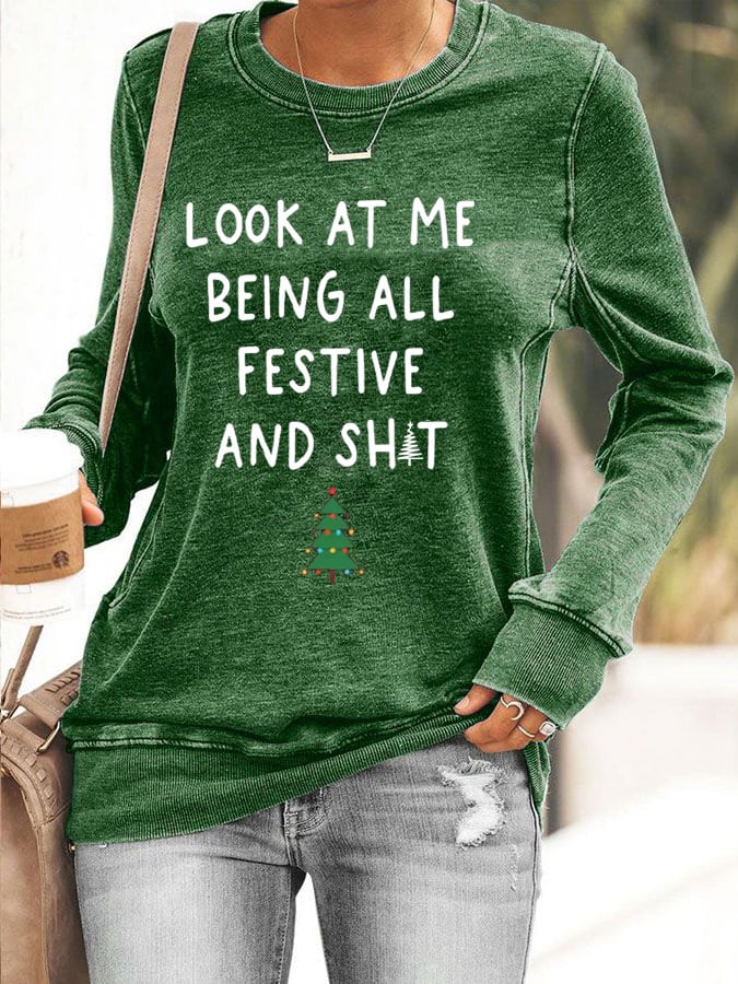 Women's Look At Me Being All Festive And Shit Print Casual Sweatshirt