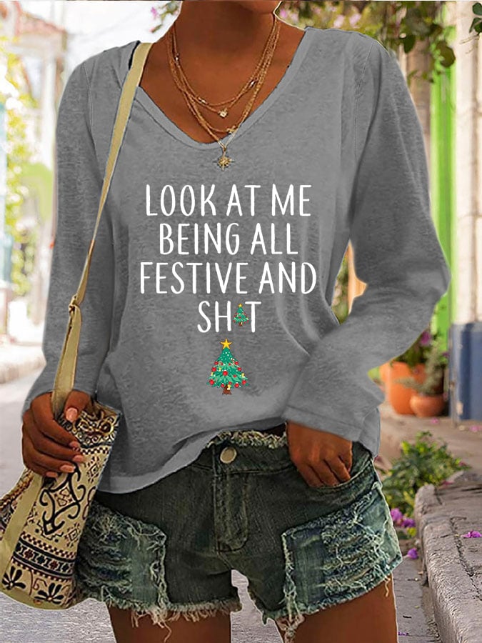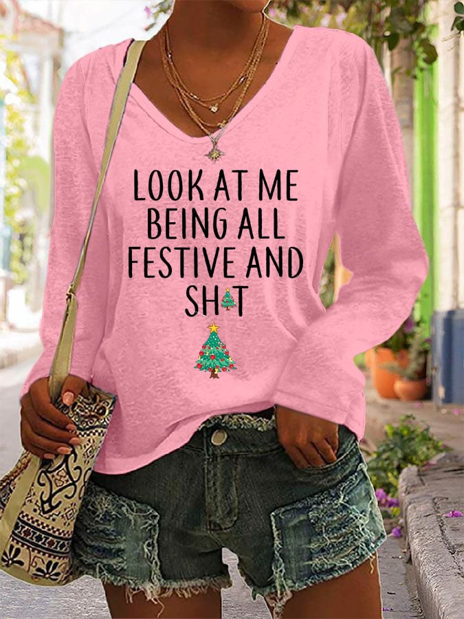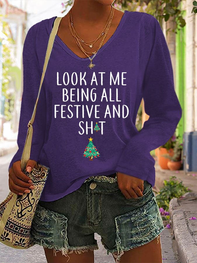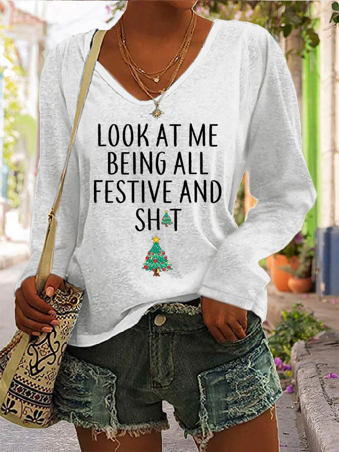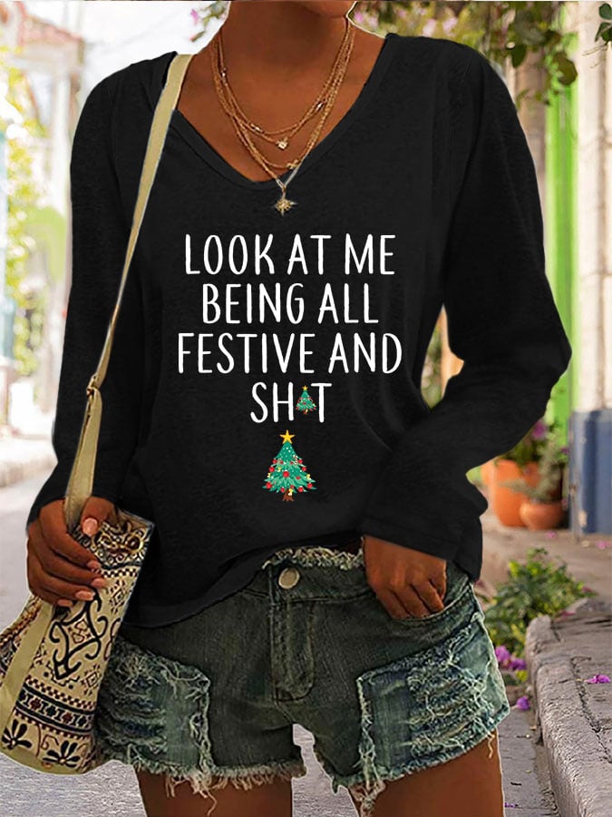 Women's Look At Me Being All Festive And Shit Print Long Sleeve T-Shirt
