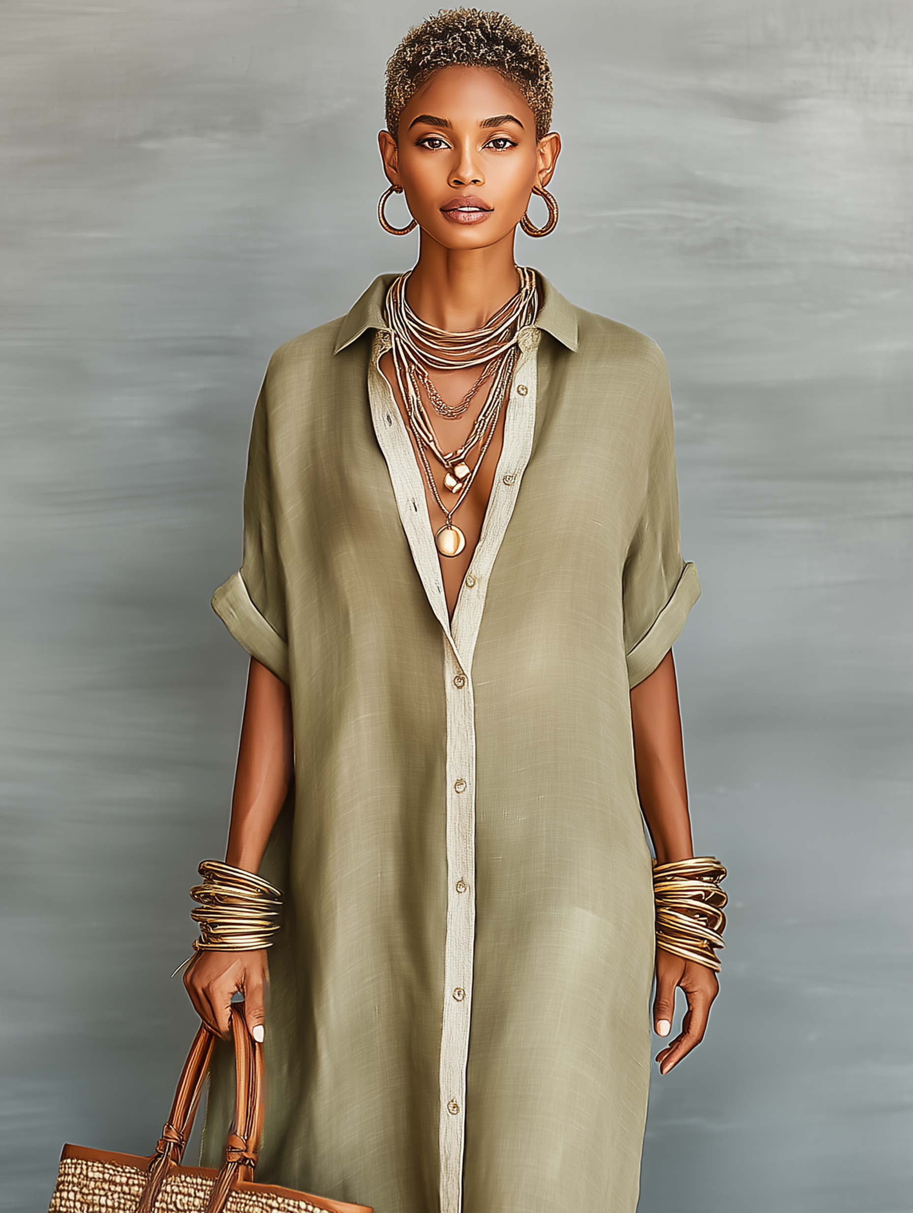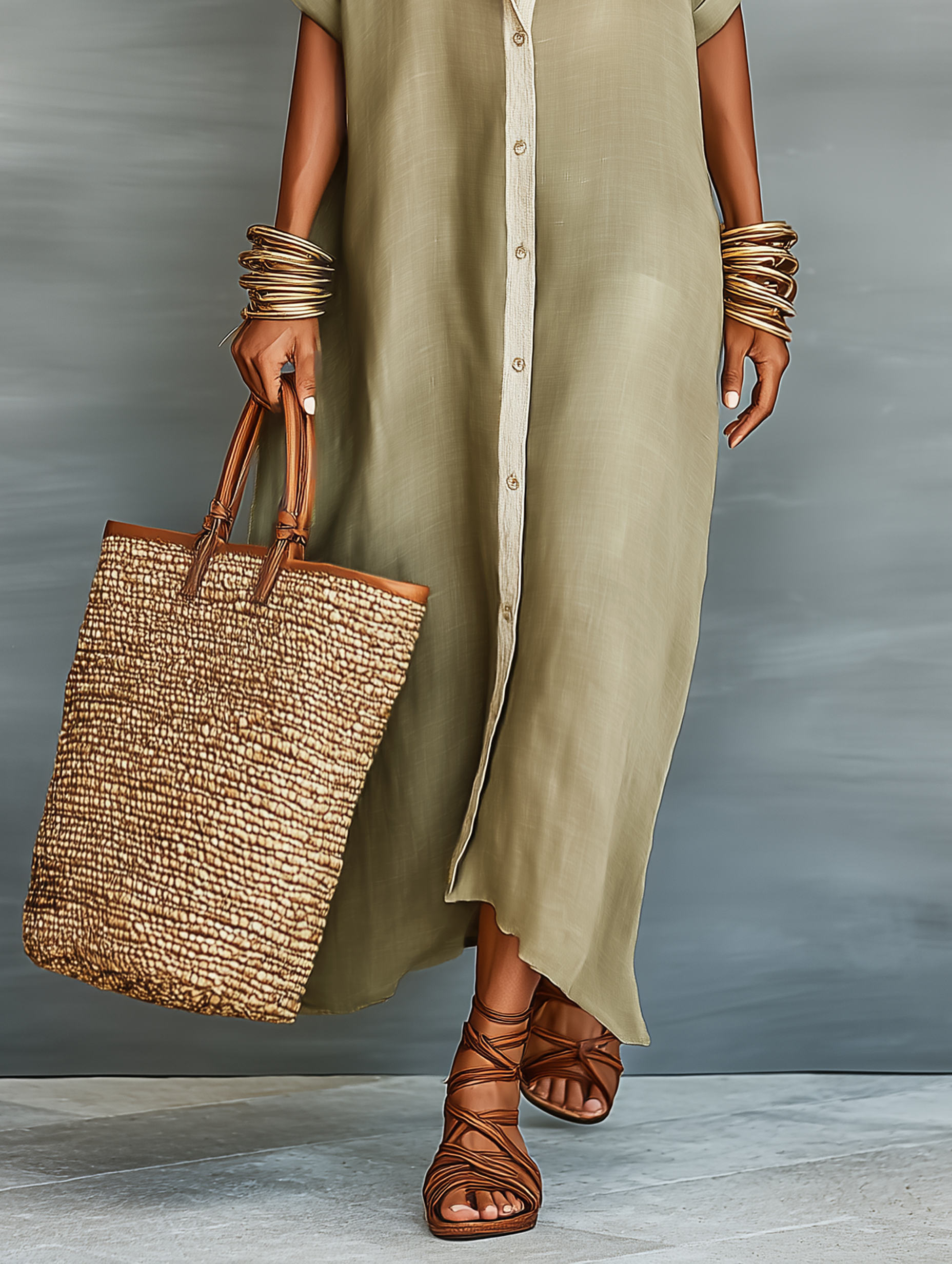 Product Name: Women’s Minimalist Linen Blend Short-sleeved Shirt Maxi Dress