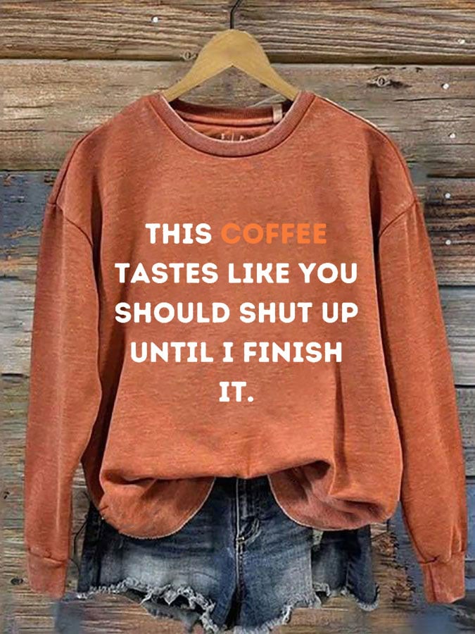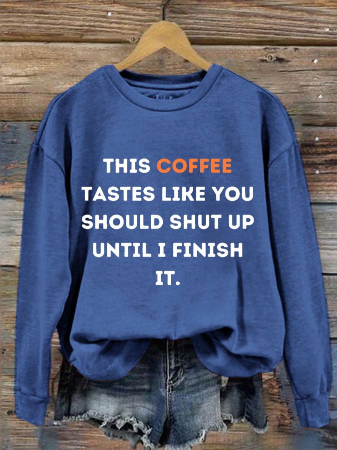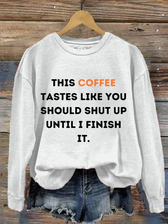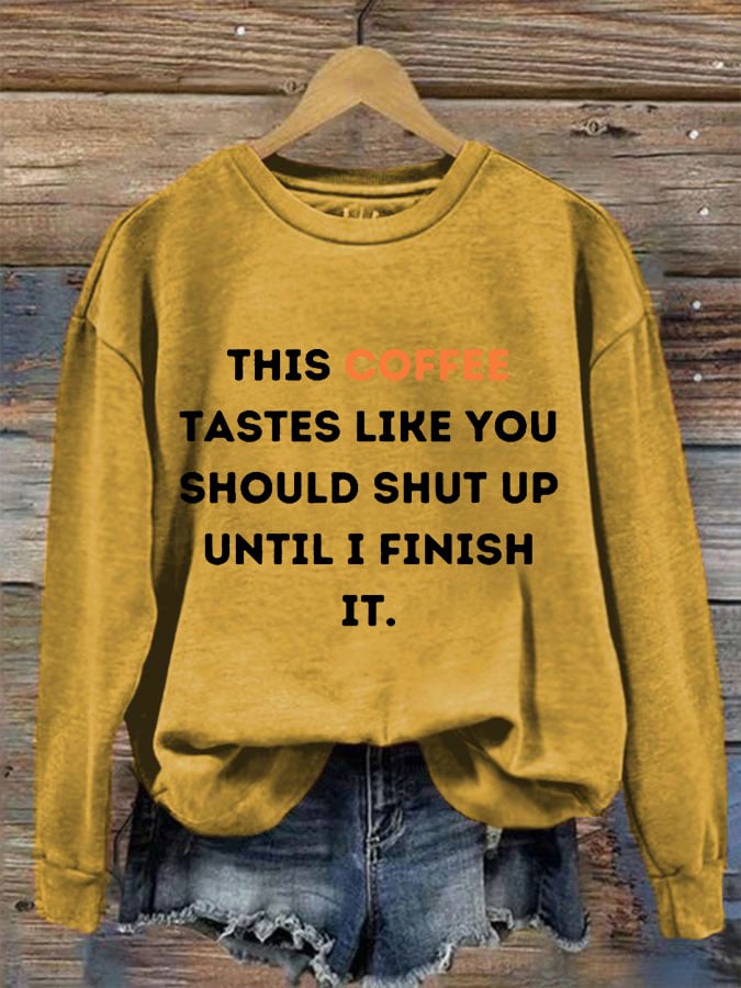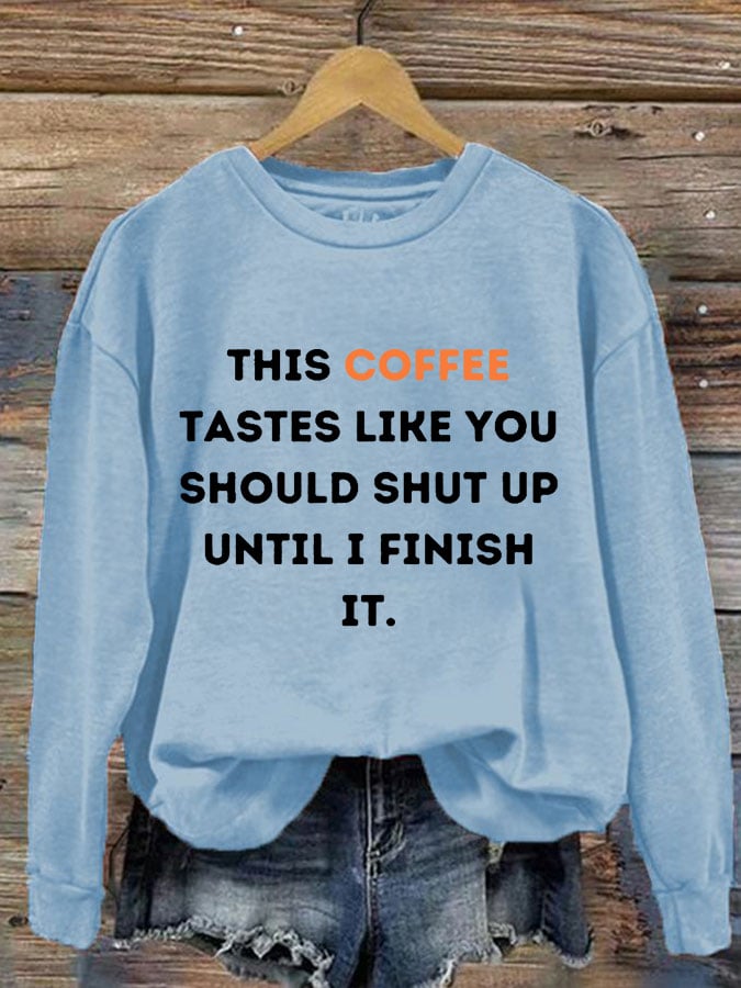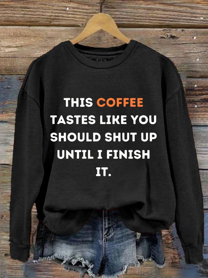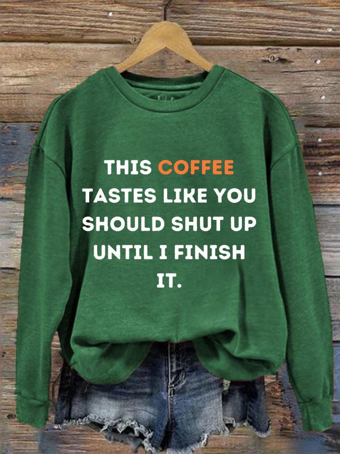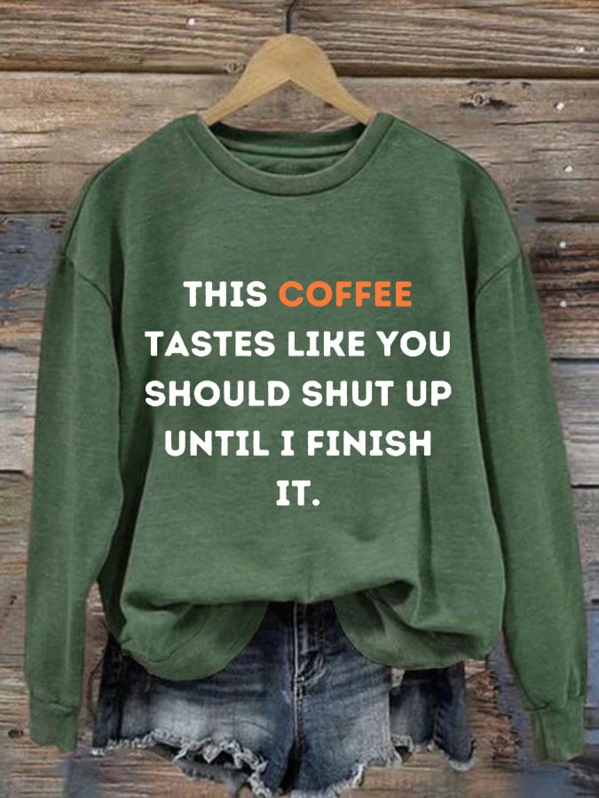 Women's This Coffee Tastes Like You Should Shut Up Until I Finish It Print Crew Neck Sweatshirt