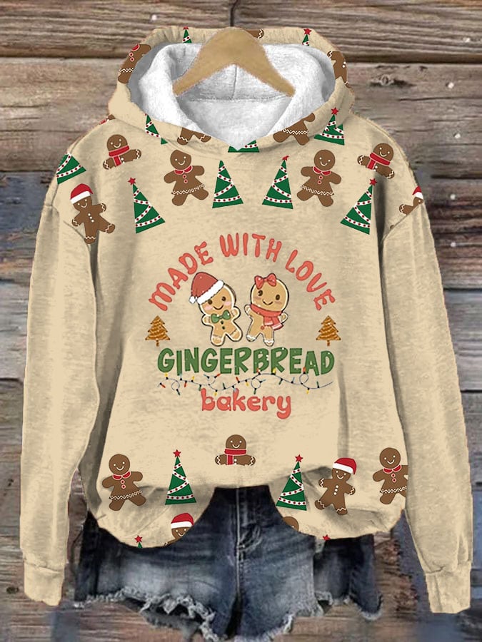 Women's Vintage Christmas Made With Love Gingerbread Printed Sweatshirt